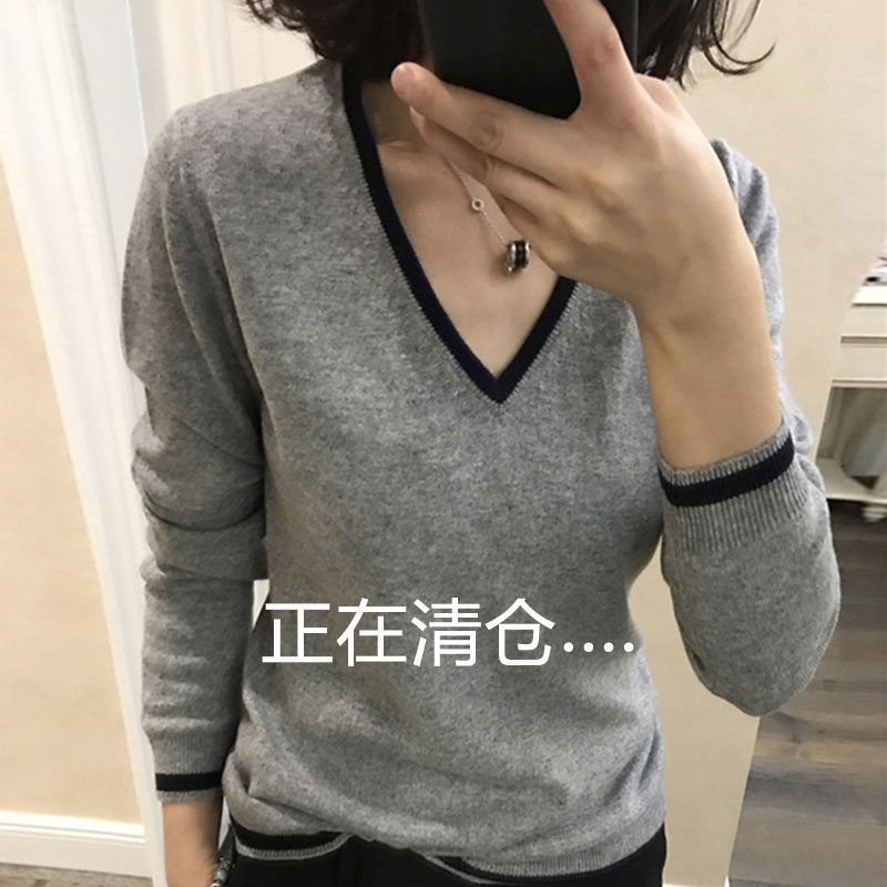 Осенний кашемировый лонгслив, трикотажный шерстяной базовый приятный телу свитер, V-образный вырез, свободный крой