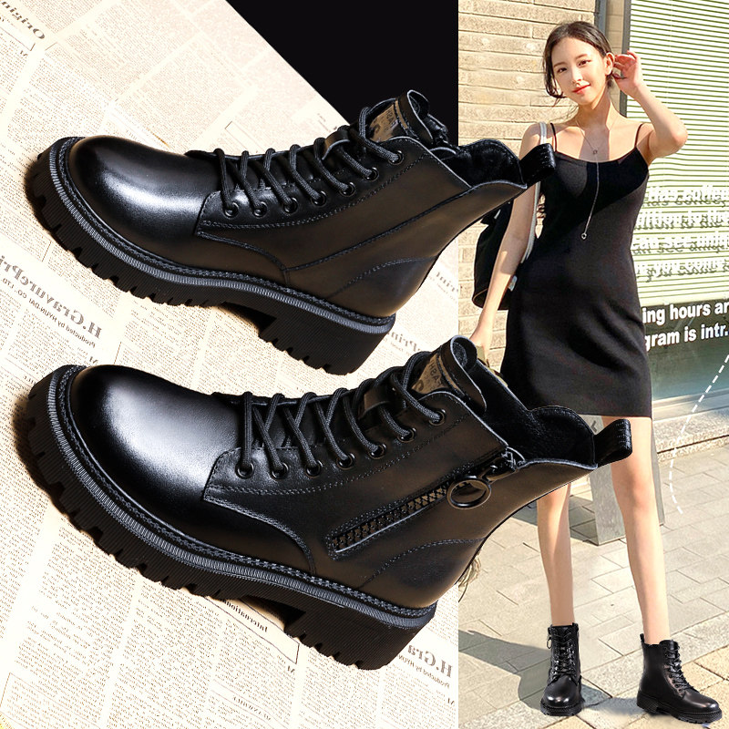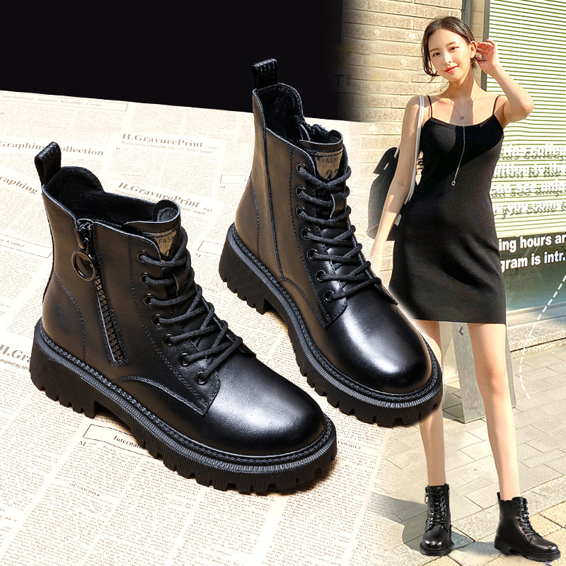Martens, демисезонные утепленные универсальные короткие сапоги с молнией в английском стиле, Гонконг, из натуральной кожи, в британском стиле