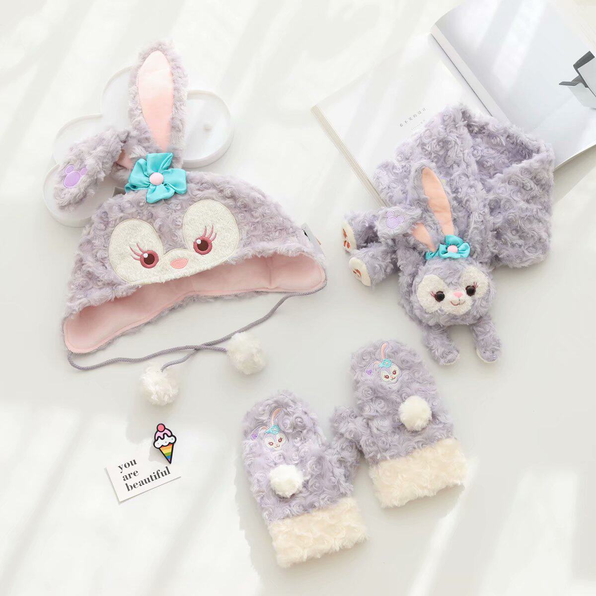 Мультяшный кролик, удерживающий тепло шарф, перчатки для взрослых, шапка