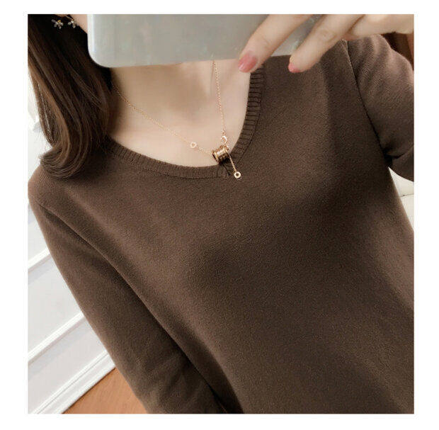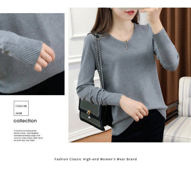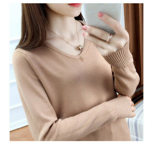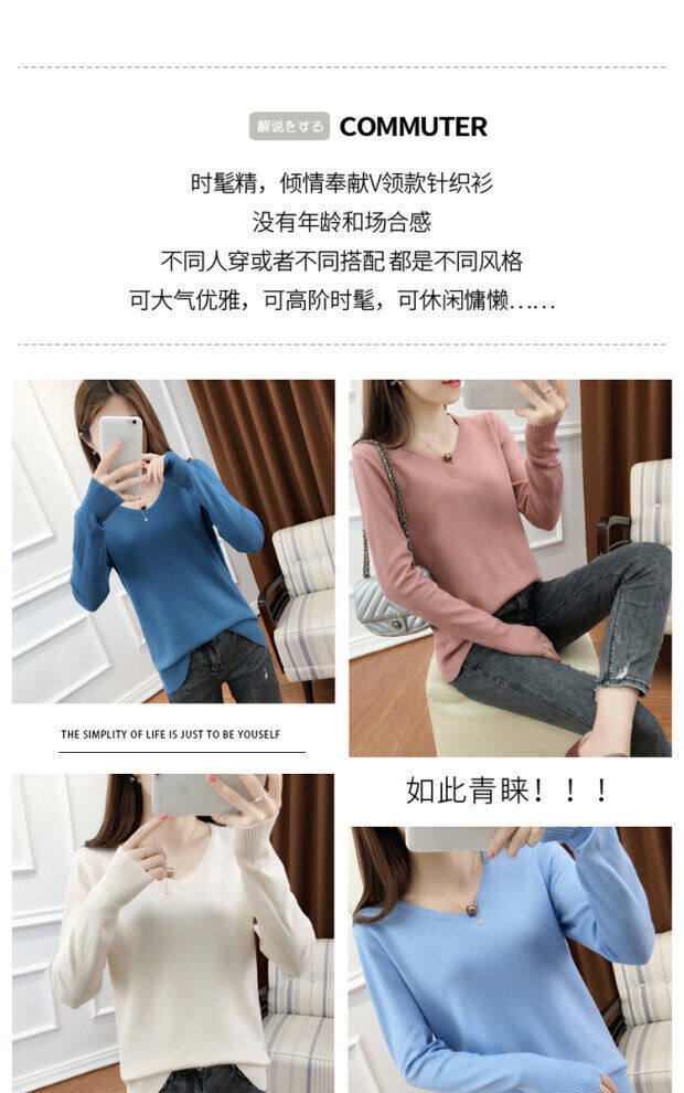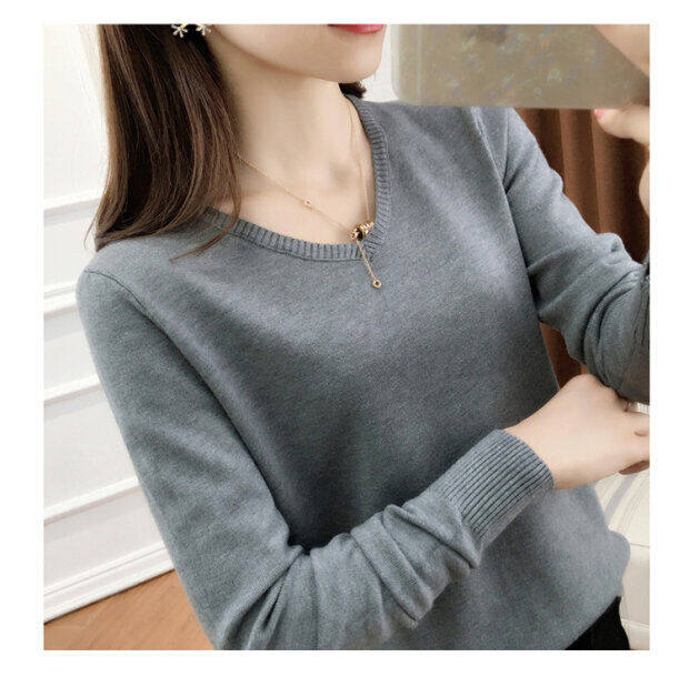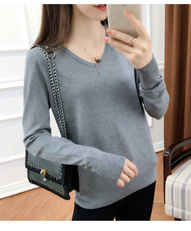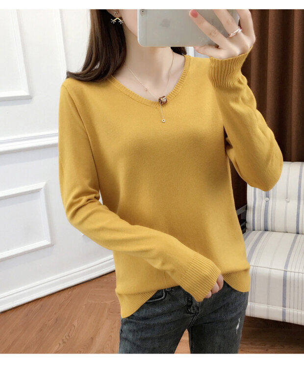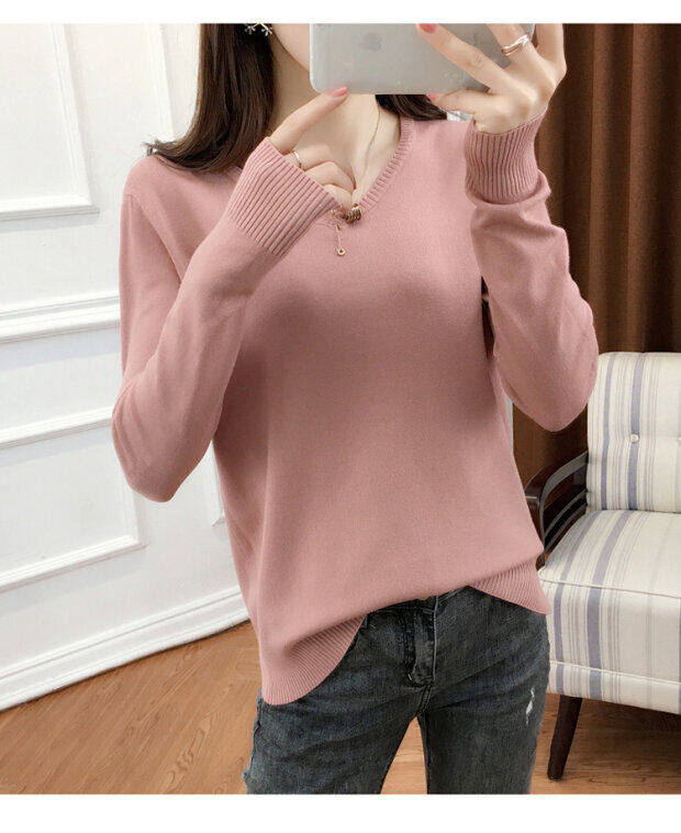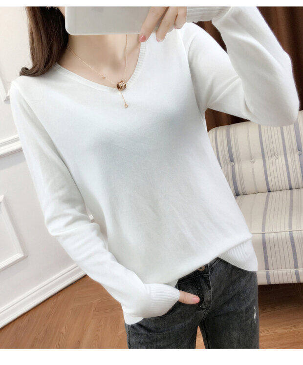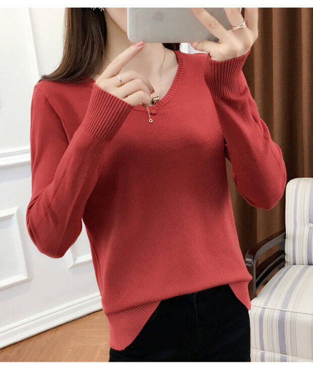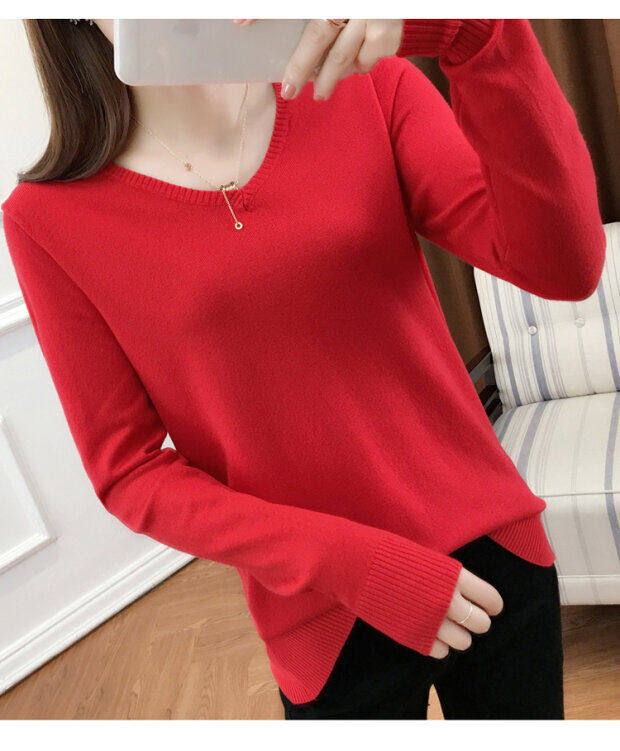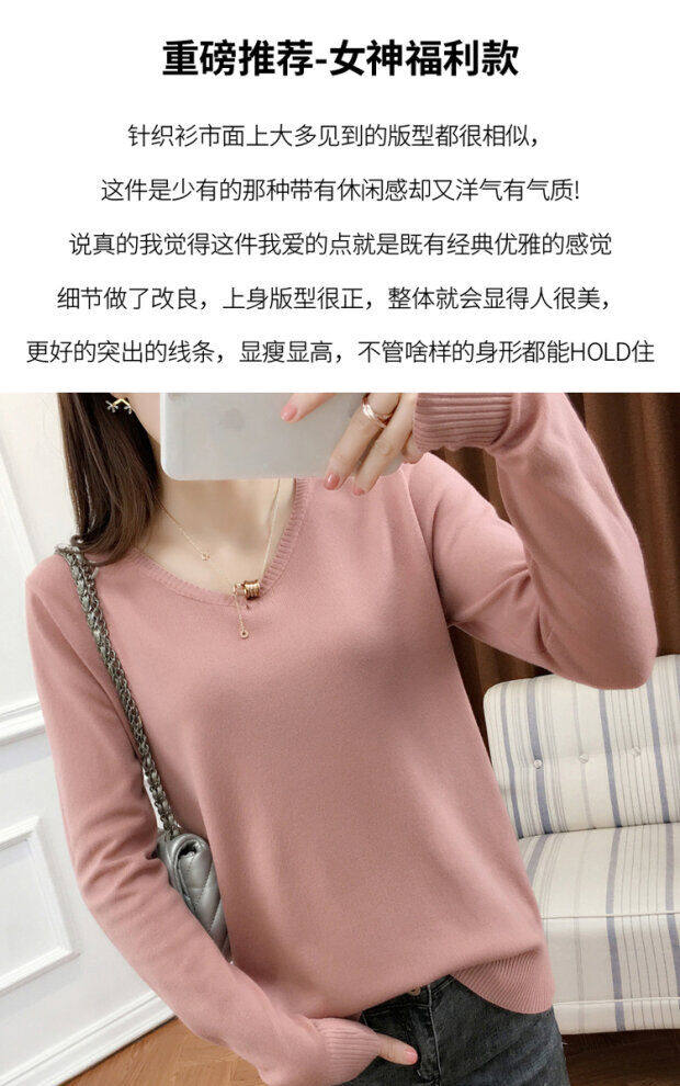 Кашемировый демисезонный трикотажный шерстяной свитер, рубашка с круглым воротником, V-образный вырез