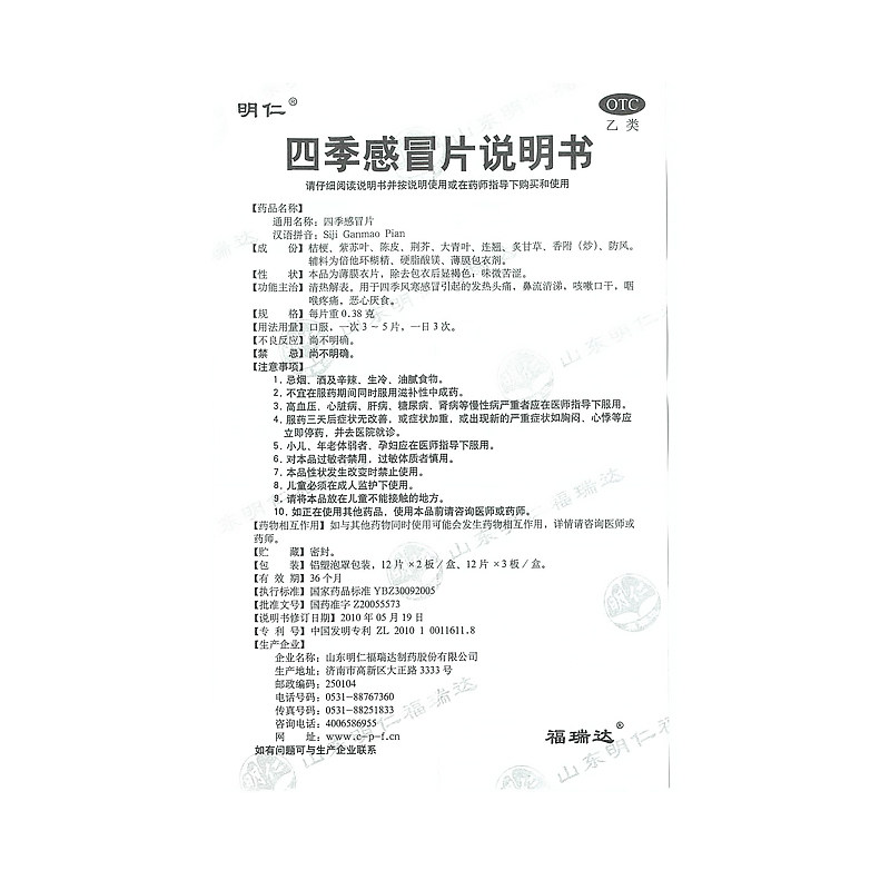 明仁 Четыре сезона холодная пленка 24 таблетки/коробка из четырех сезонов Ветром Холодный кашля
