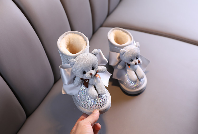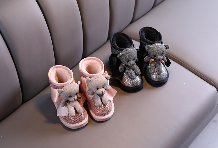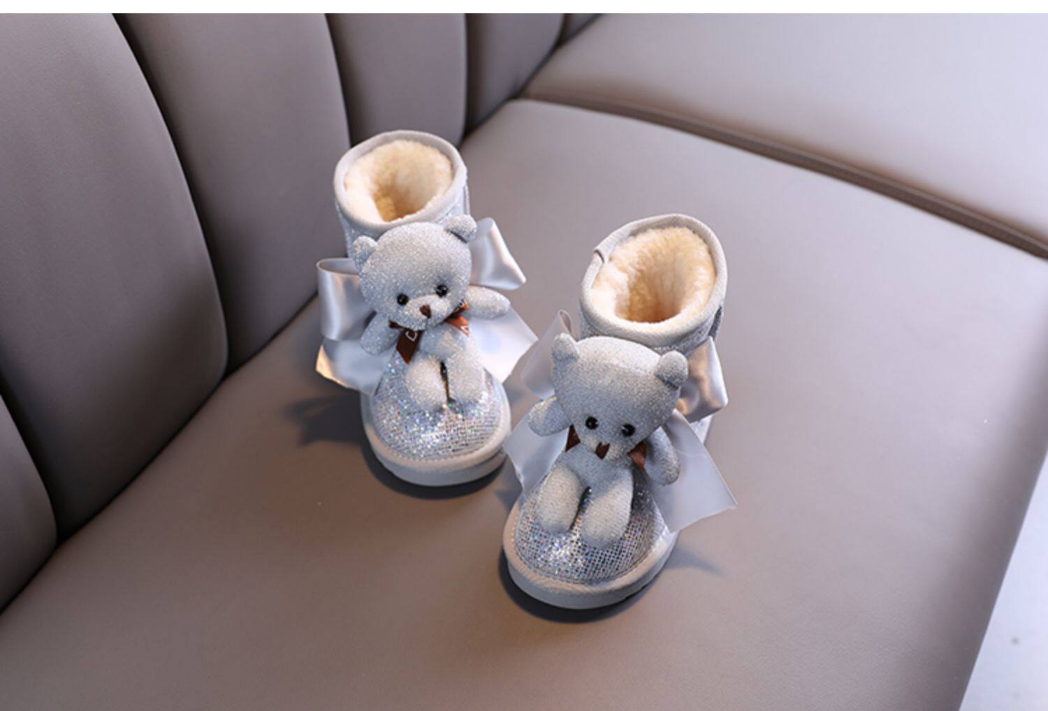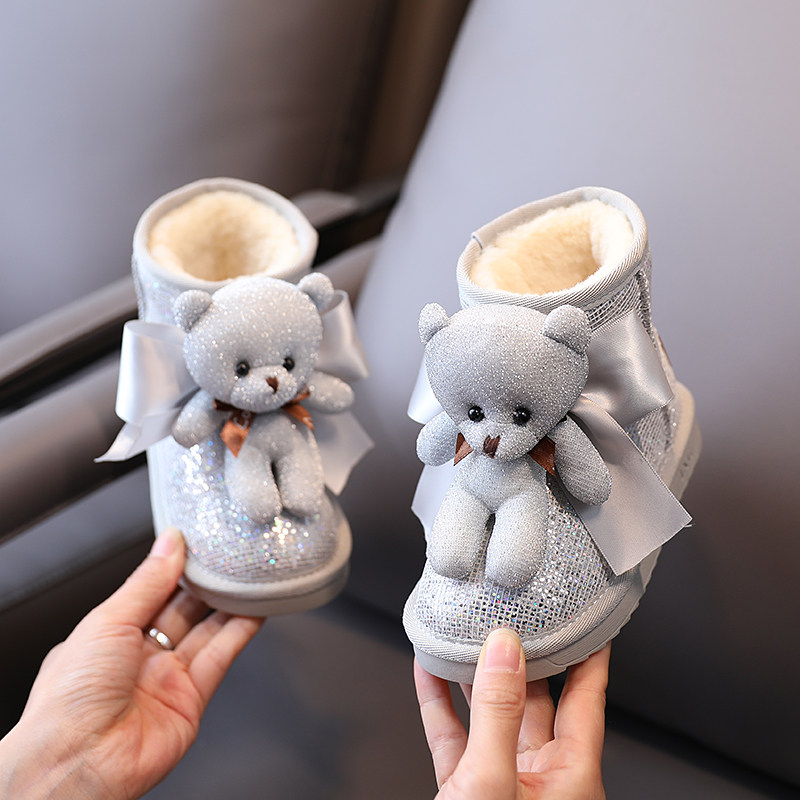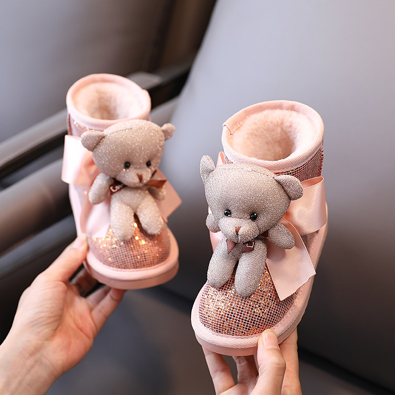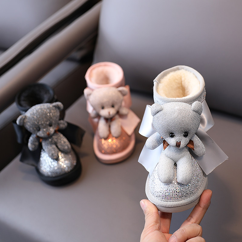 Зимние милые детские блестки для ногтей, короткие сапоги для принцессы, 2021 года, с медвежатами, увеличенная толщина, новая коллекция