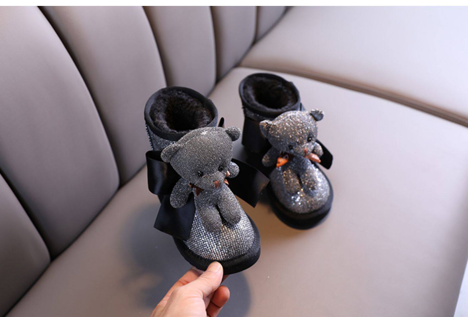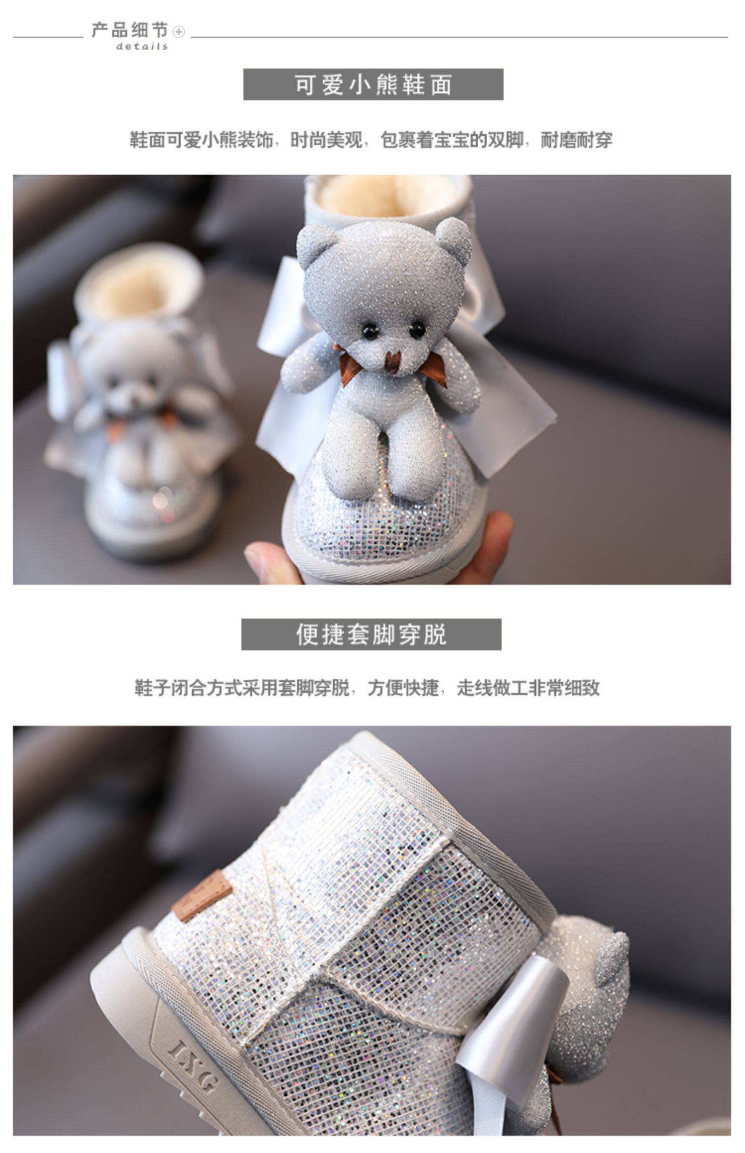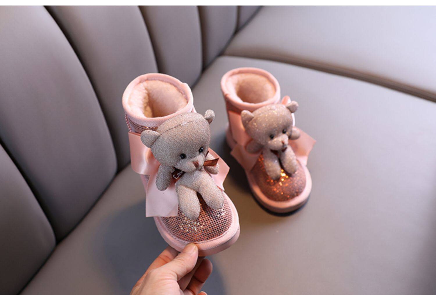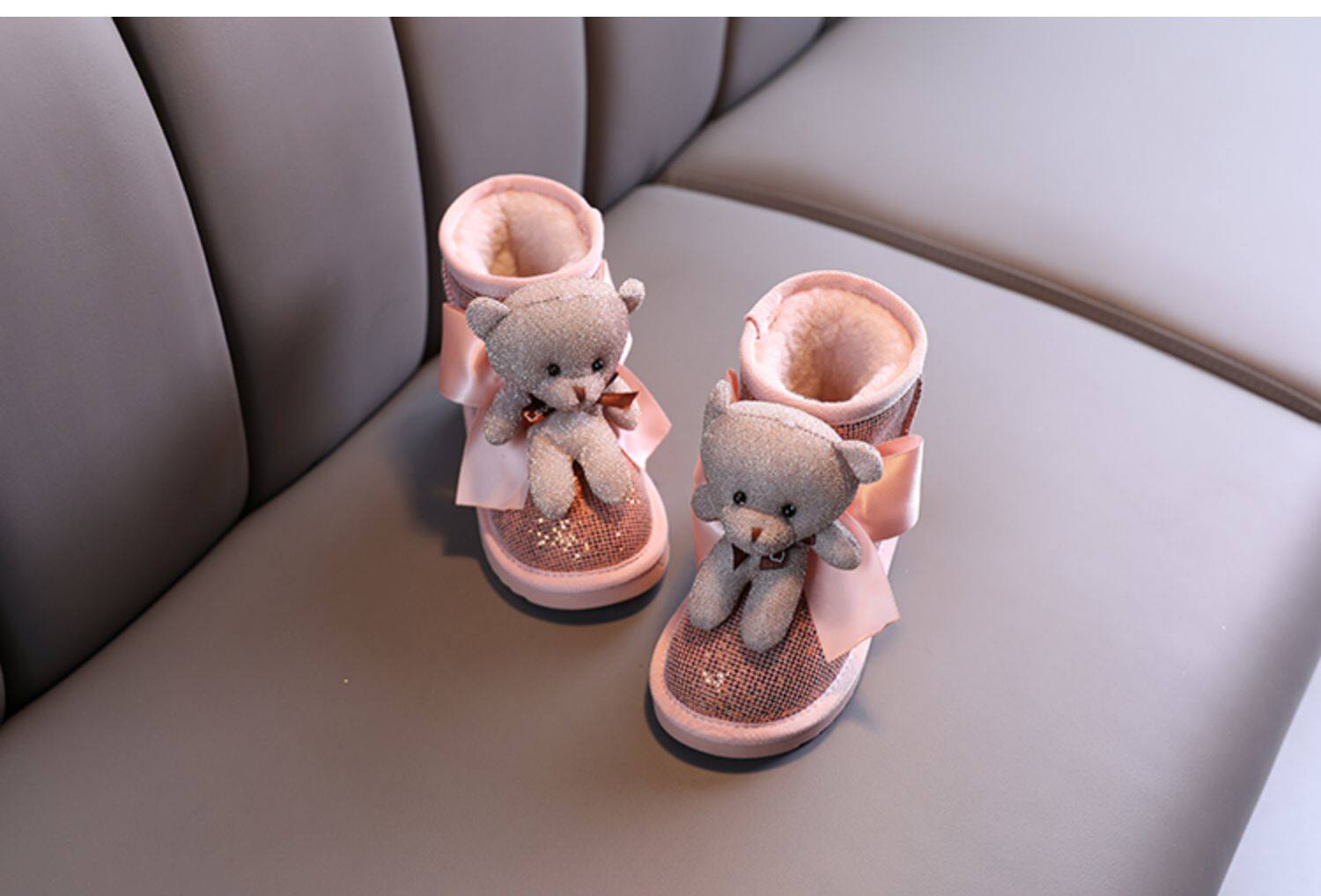 Зимние милые детские блестки для ногтей, короткие сапоги для принцессы, 2021 года, с медвежатами, увеличенная толщина, новая коллекция