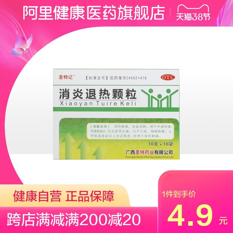 圣特记 Анти -инфляционная и деградированная частица 10G*10 мешков/ящик нагревающие головную боль, лихорадочная лапша, отек горла и боль взрослые