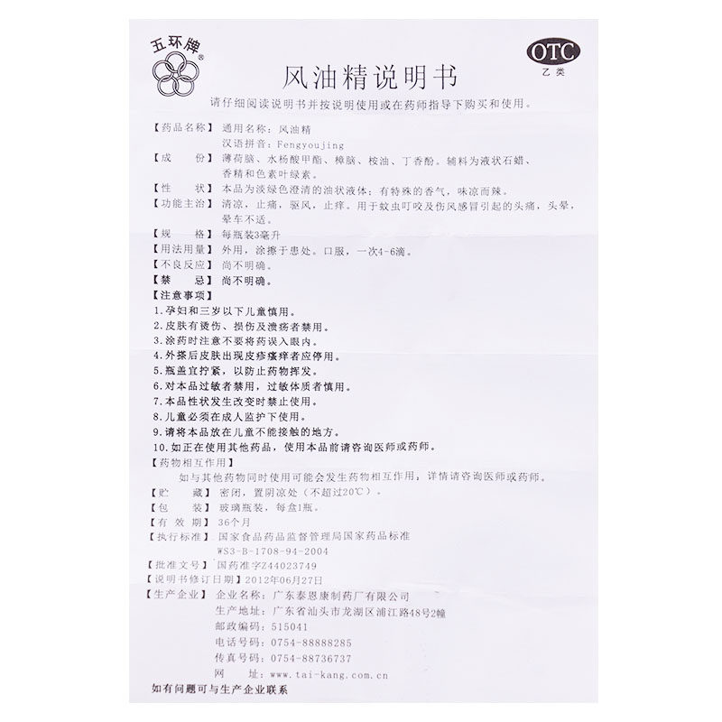 五环牌 Прохладное средство от укусов комаров, 3 мл