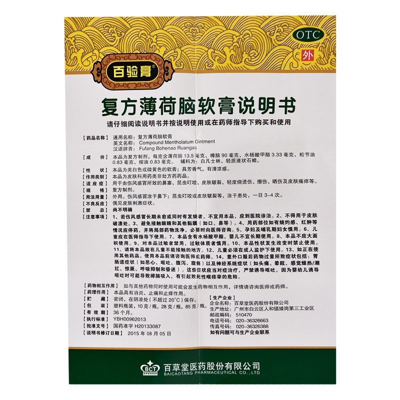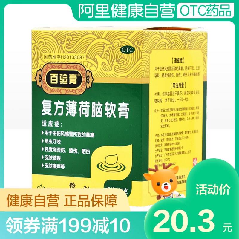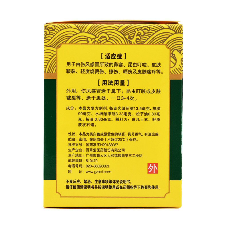 百验膏 Мятная мазь, средство от укусов комаров от заложенности носа, 28G