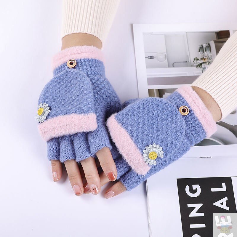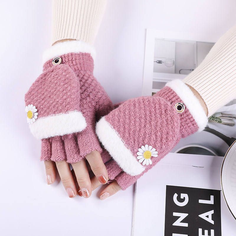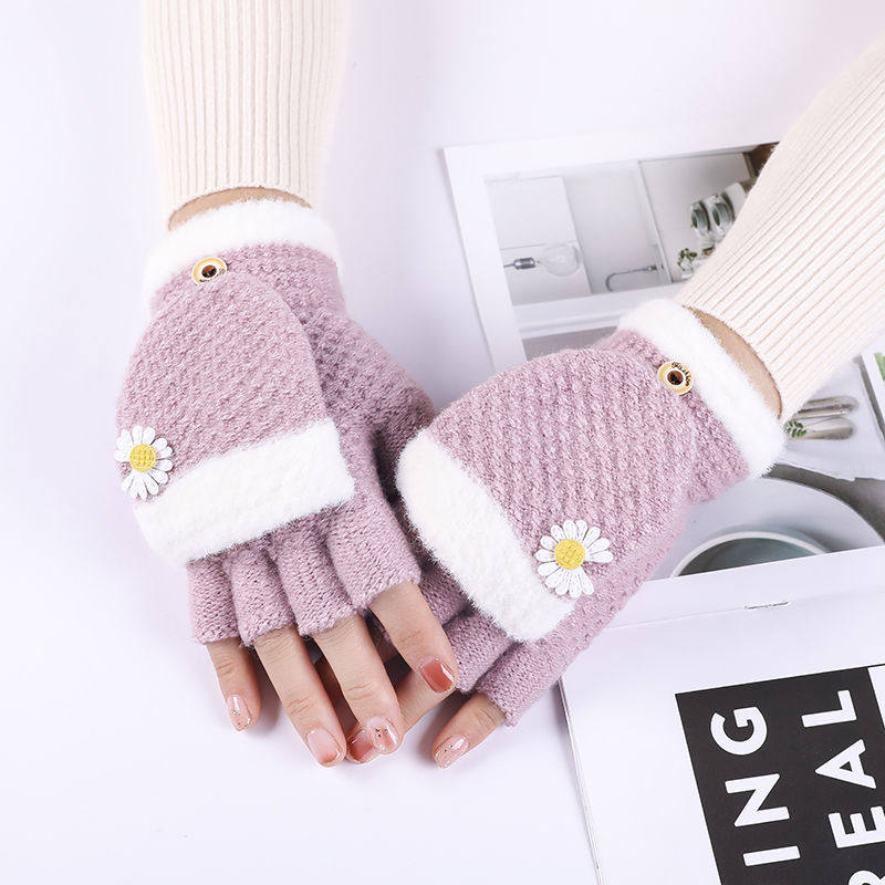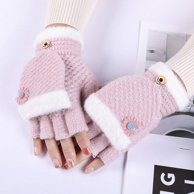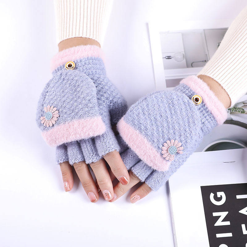 Шерстяные перчатки, зимний удерживающий тепло милый мультяшный трикотажный комплект для школьников и студентов, без пальцев, в корейском стиле