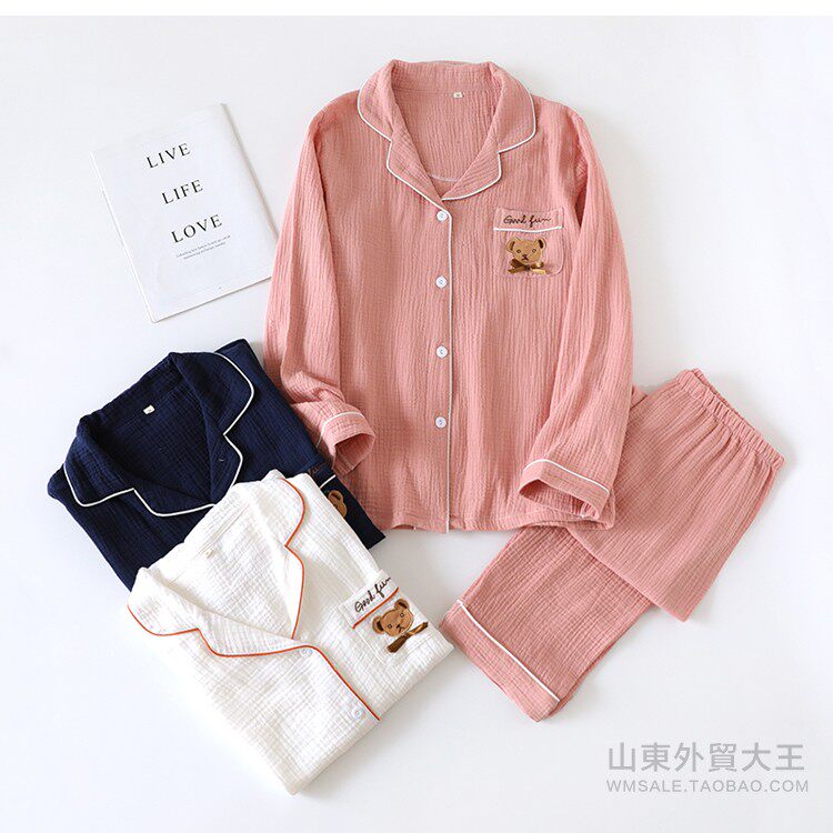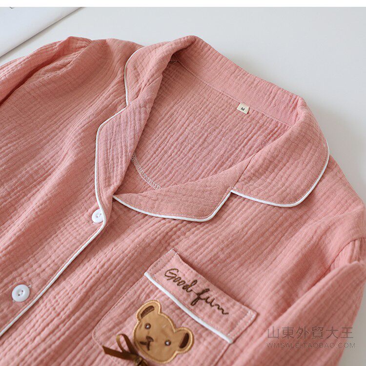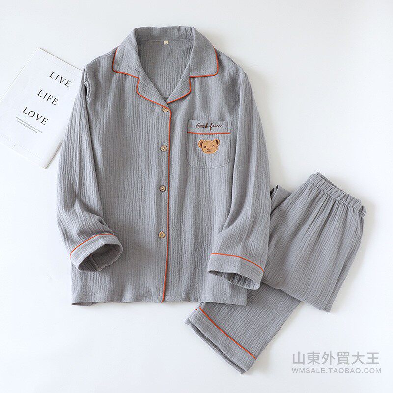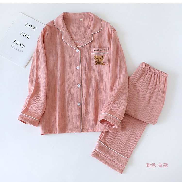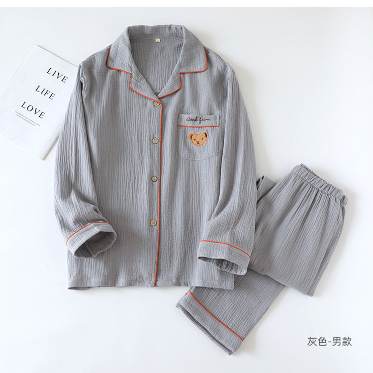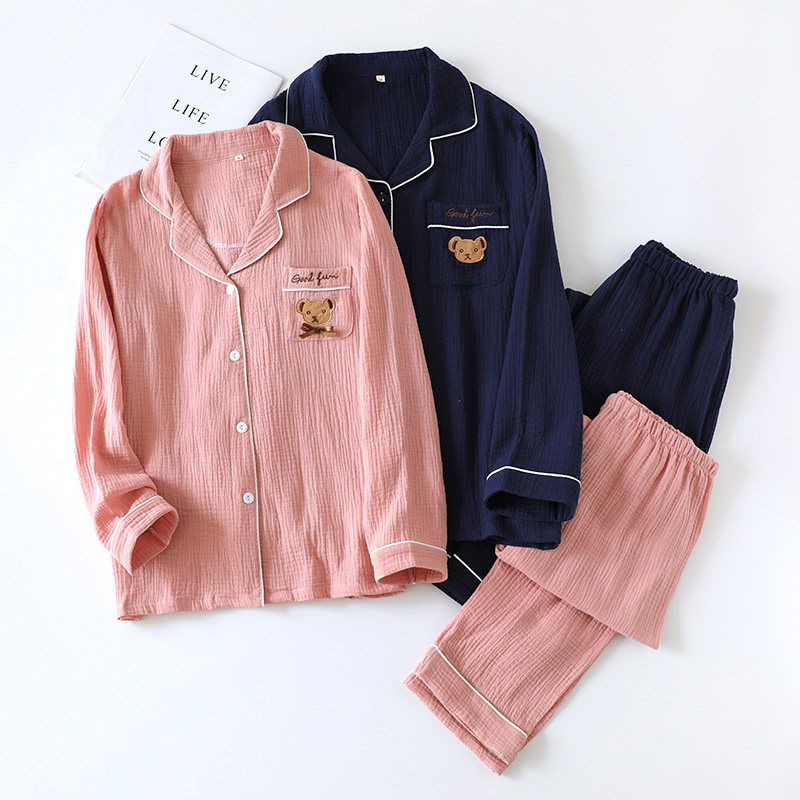 Японская осенняя пижама, хлопковый лонгслив, комплект, с медвежатами, с вышивкой, для влюбленных