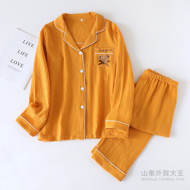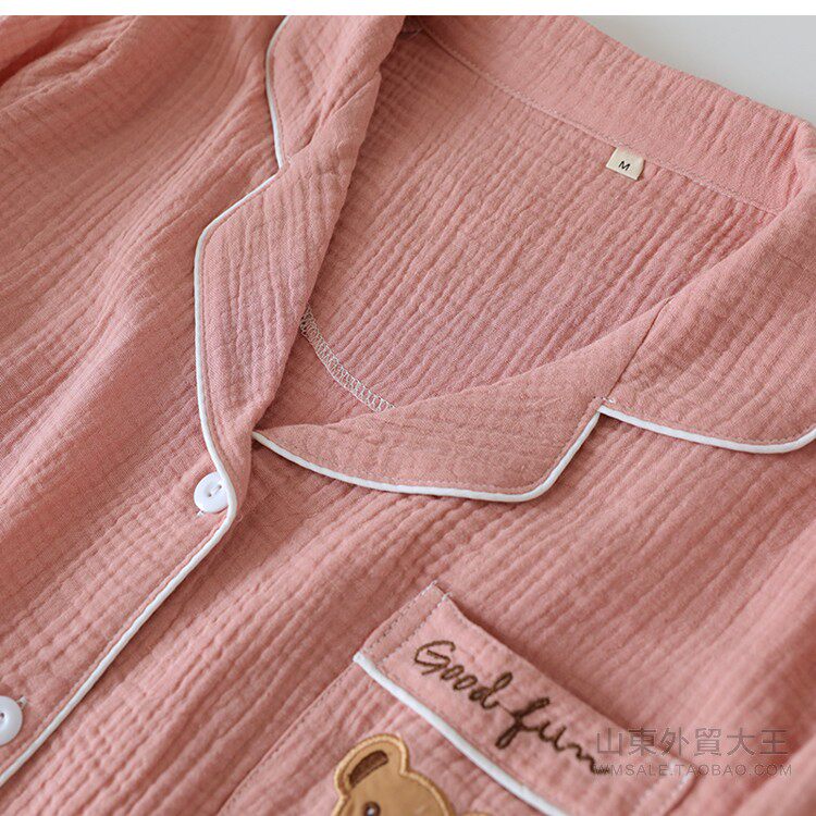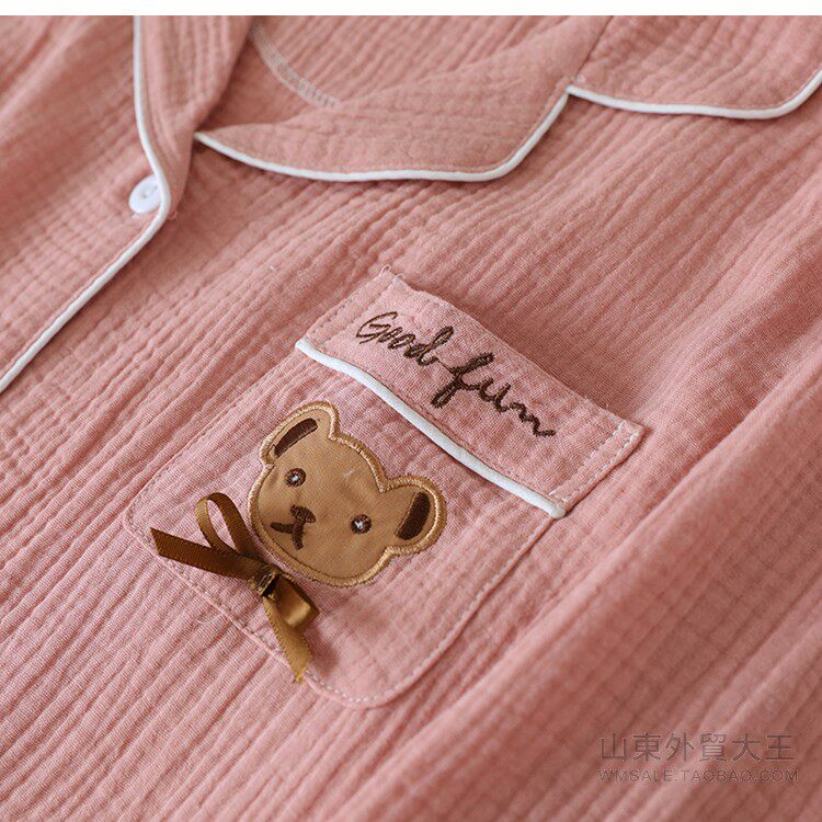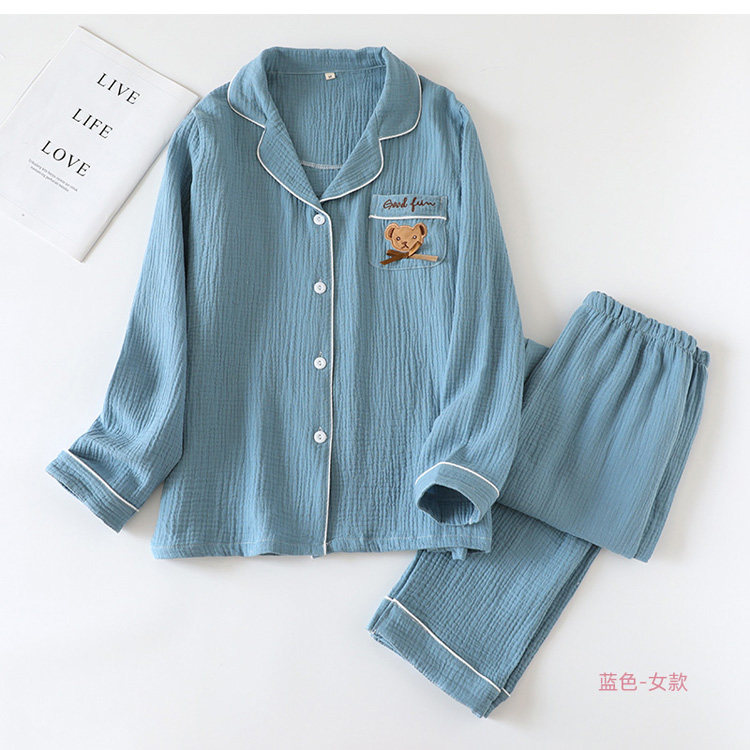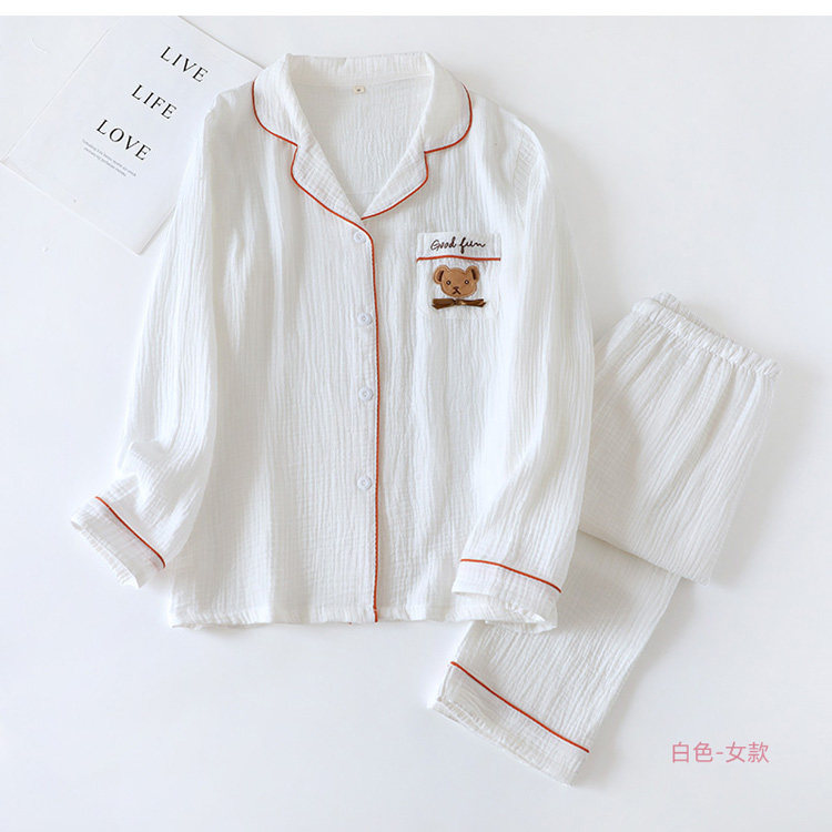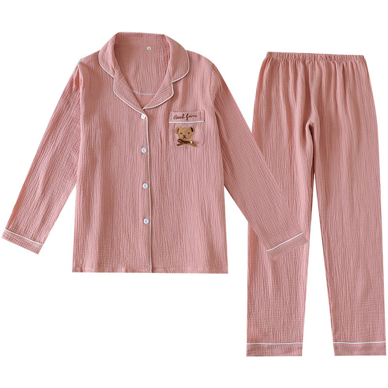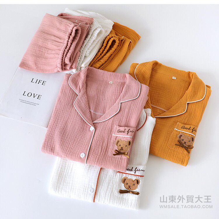 Японская осенняя пижама, хлопковый лонгслив, комплект, с медвежатами, с вышивкой, для влюбленных