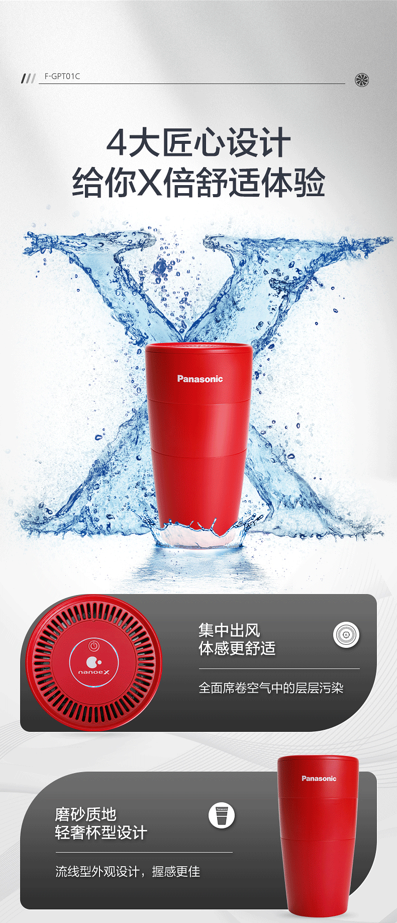 Panasonic Nanoe Nano Yishui Ion Ion Exifference Democe Aljust, бактериофил, стерилизация и красная чашка F-GPT01C-R