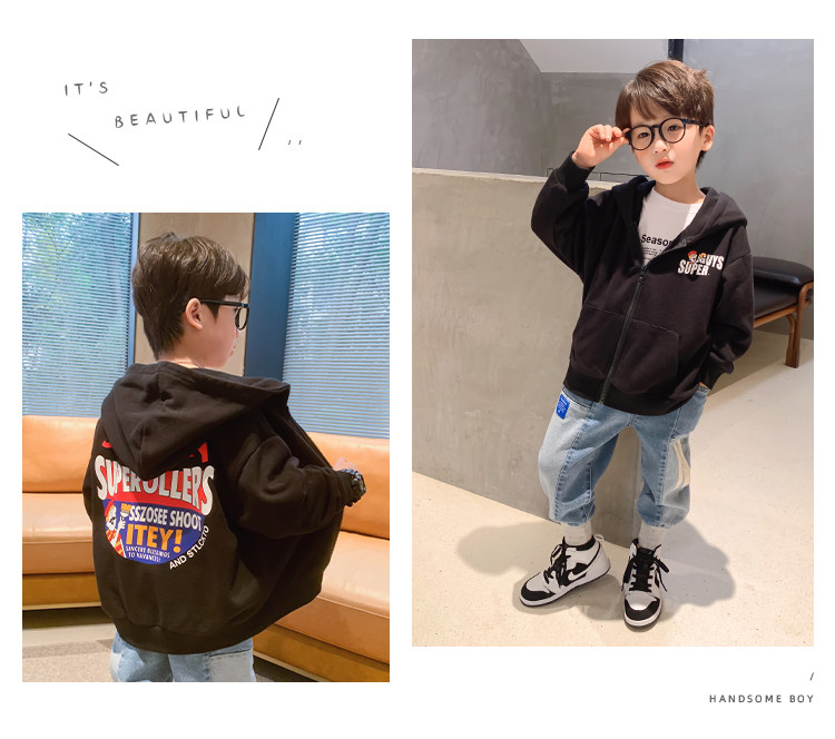 左西 Детская хлопковая осенняя куртка для мальчиков с капюшоном, в западном стиле, подходит для подростков, коллекция 2021