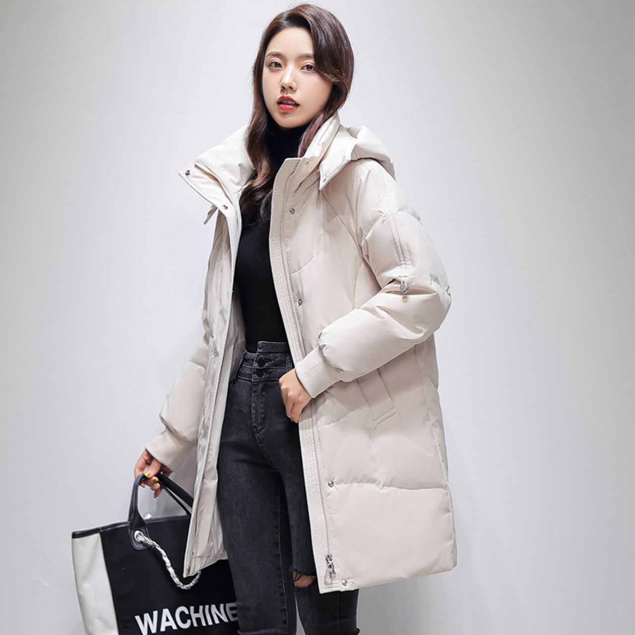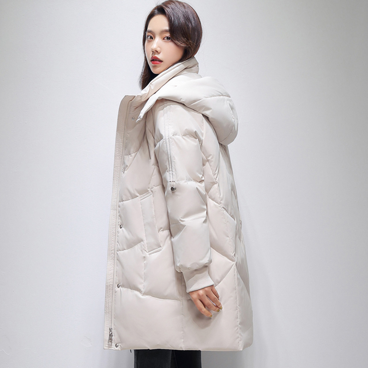 Демисезонный удерживающий тепло пуховик, оверсайз, средней длины