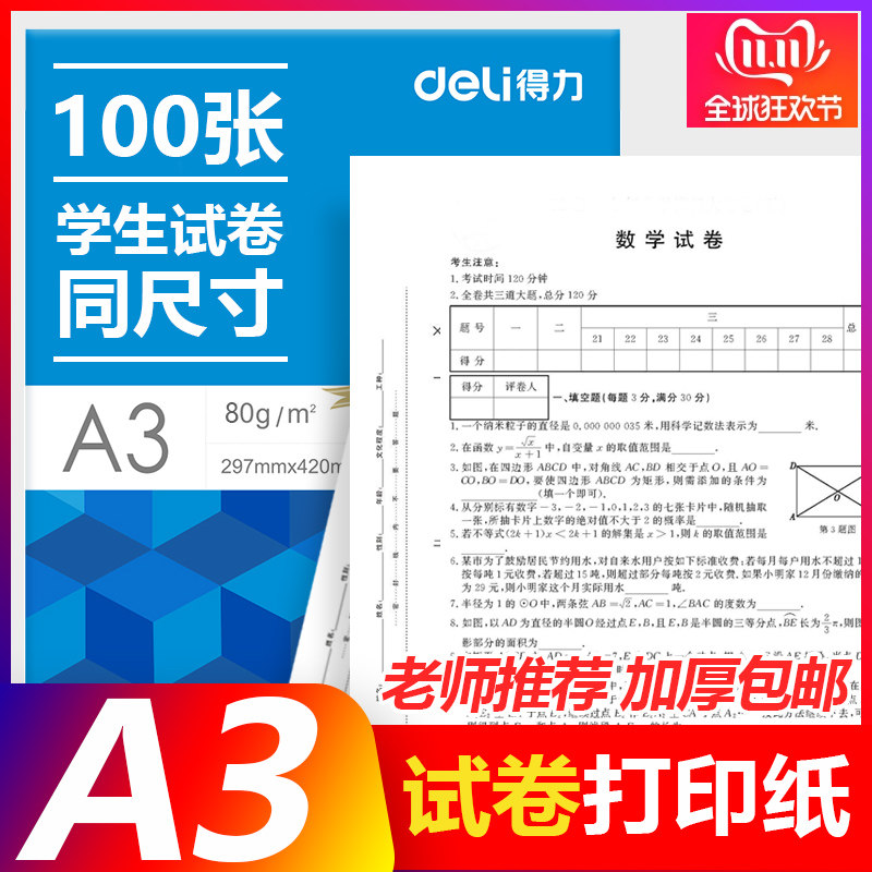 Deli A3 Тестовая бумага из бумаги 100 листов бумажной бумаги начальной школы двойная копии A3 White Paper Applicing Paper Paper
