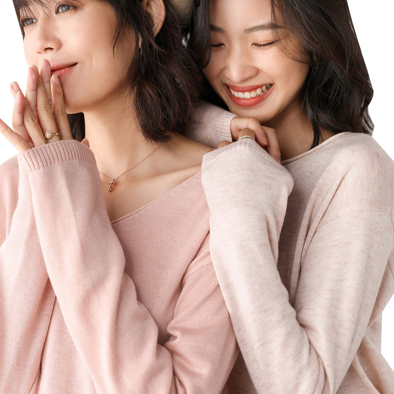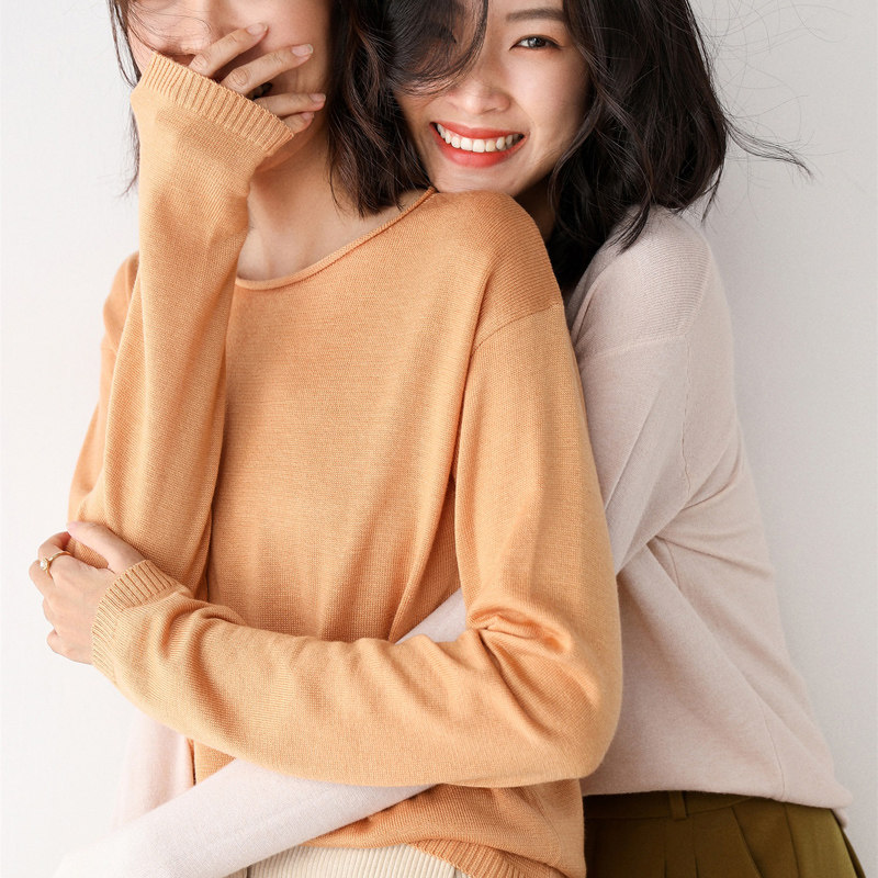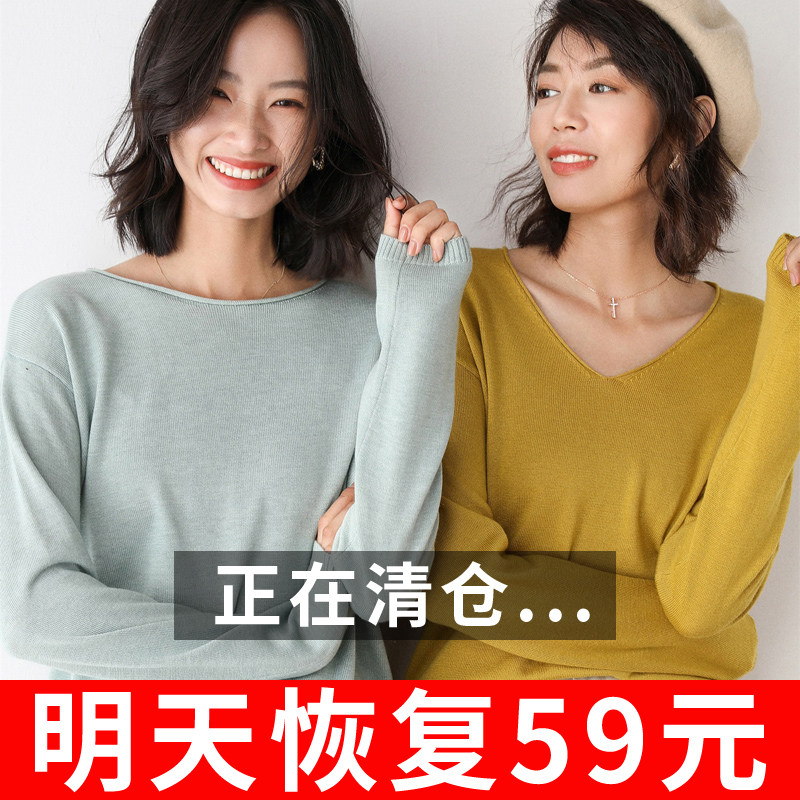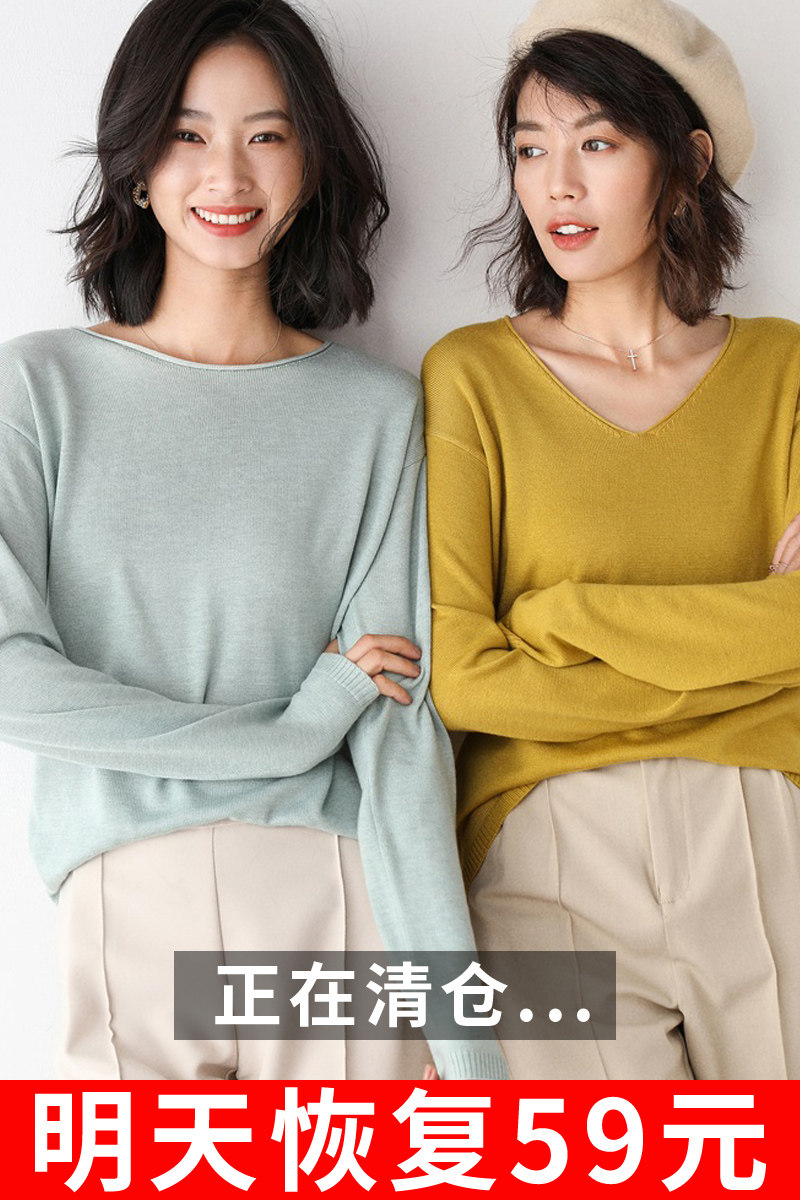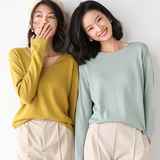 Демисезонный кашемировый трикотажный шерстяной базовый приятный телу свитер с круглым воротником, V-образный вырез, свободный крой