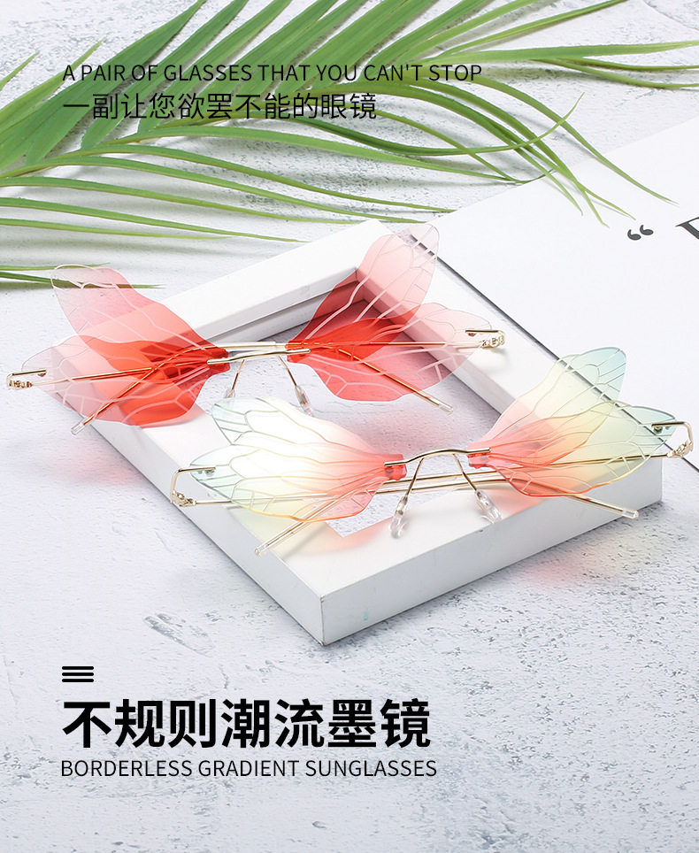 Солнцезащитные очки Dragonfly Wings Женские безрамочные персонализированные солнцезащитные очки Европейские и американские солнцезащитные очки Douyin для сценического шоу в фотостиле