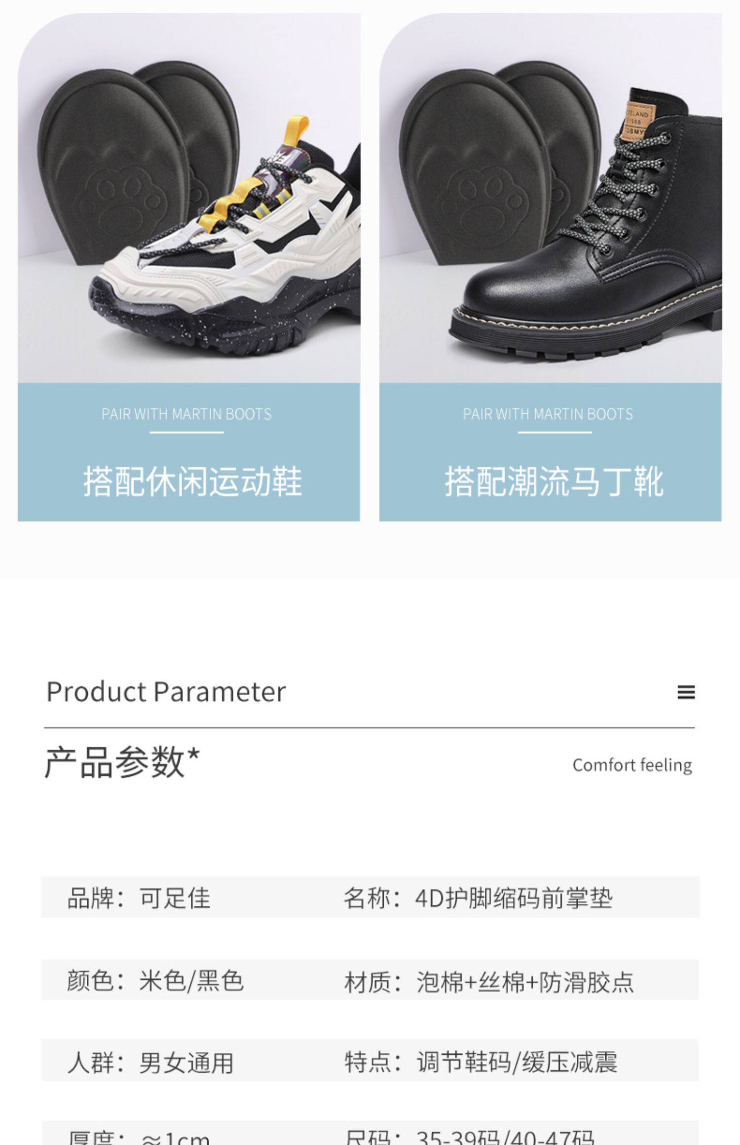 Обувь с небольшими артефактами, спортивная обувь Мужчины и женщины регулируют стельки для наполнения, ноги, подключите переднюю ладонную половину, большой размер