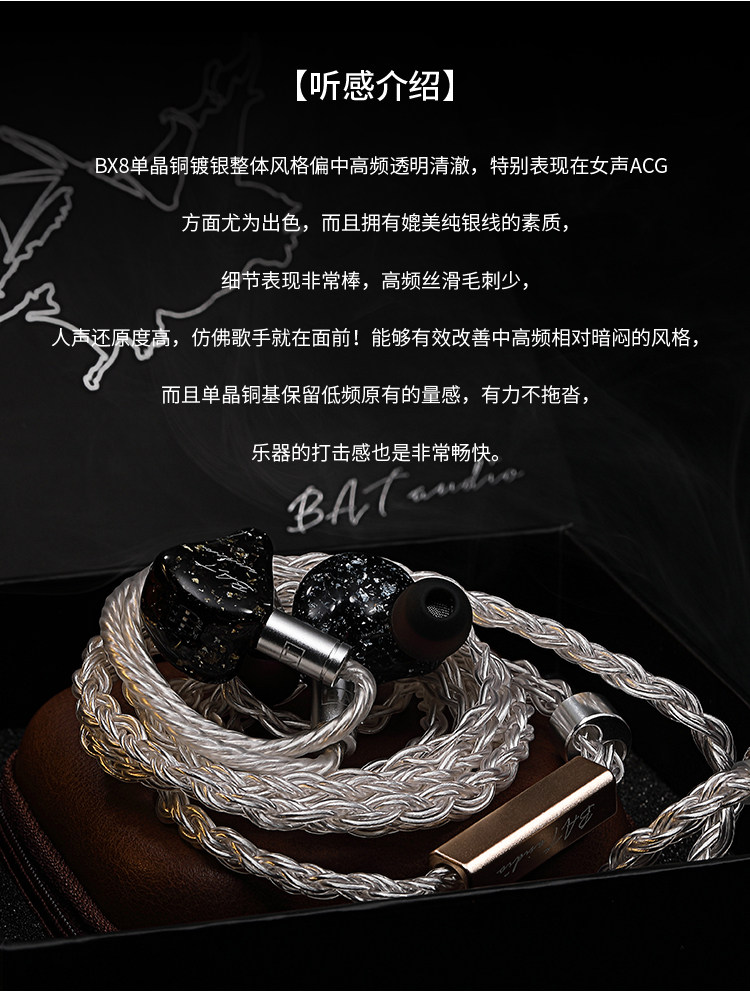 BAT Audio BX8 MOLIR -Кристаллические медные наушники Line IE40 IE80S SE535 SE846 IM LS400 A2DC MMCX 0,78 2,5 4,4 Линия ушин