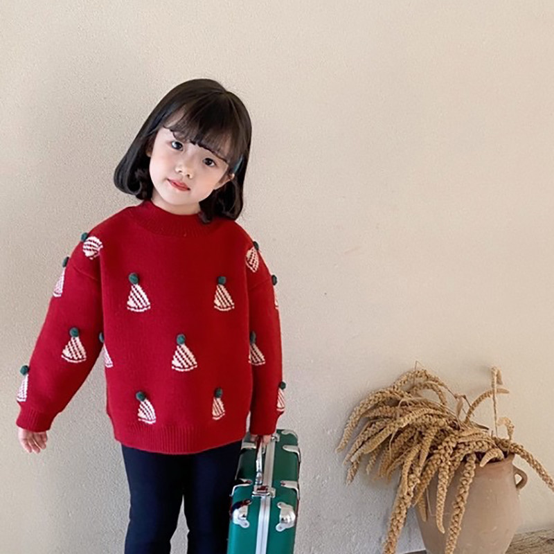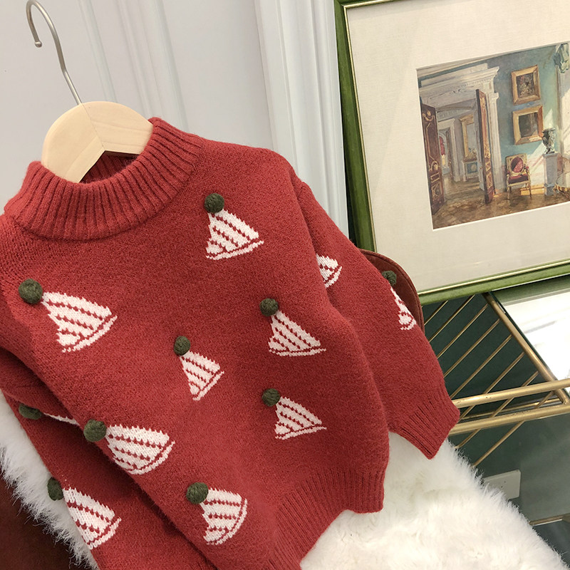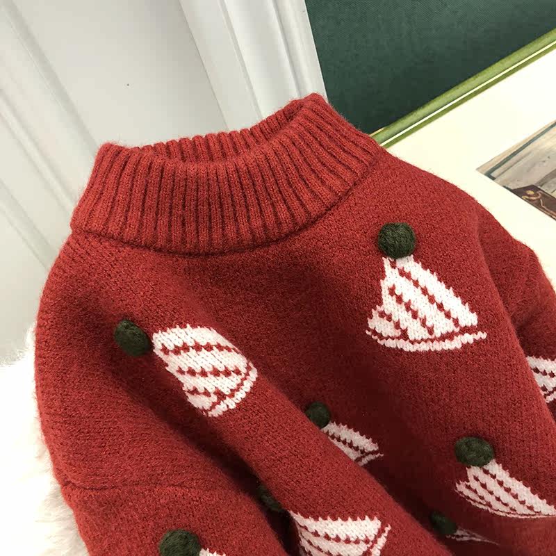 Новогодний наряд ~ Пуловер для девочек густой красный праздничный свитер круглый