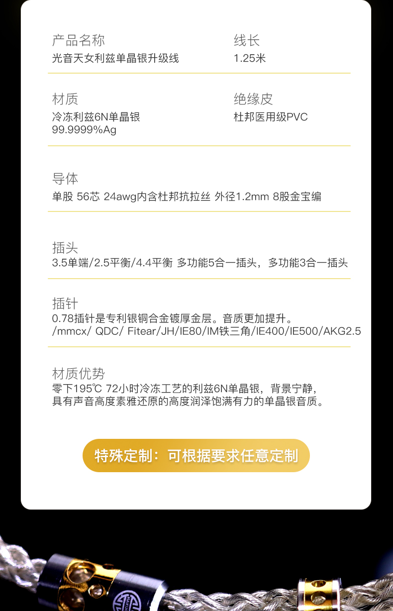 Hakugei Baijing Guangyin Одиночный однокристаллический серебряный наушники.