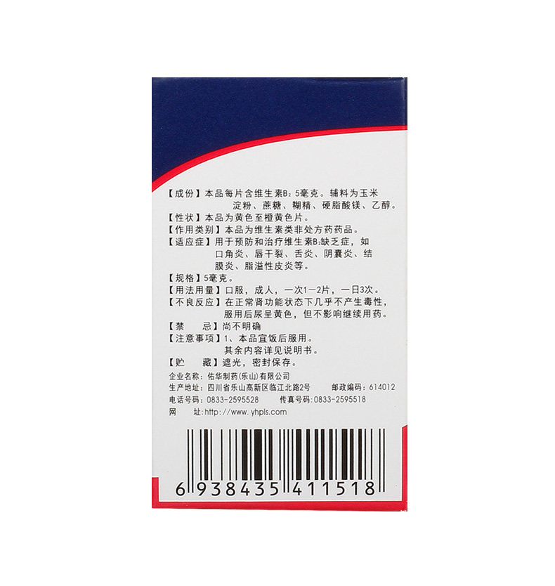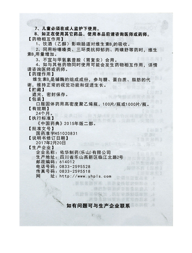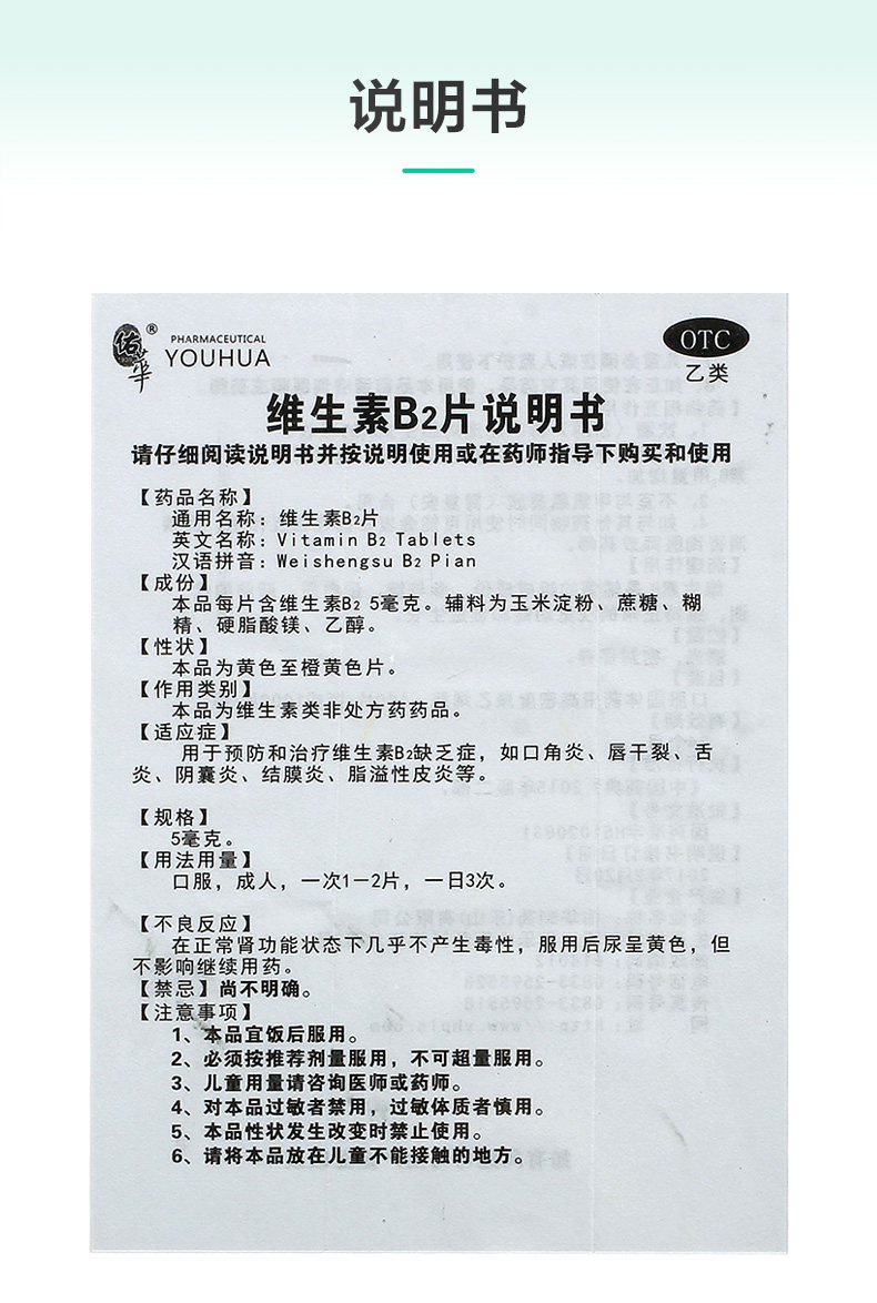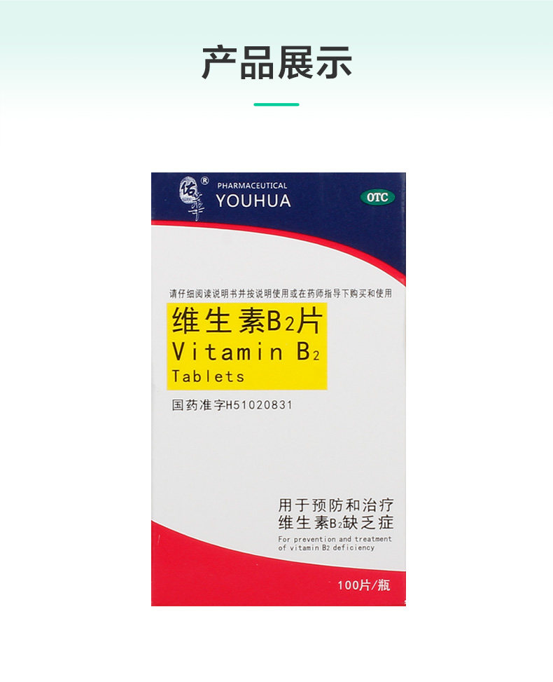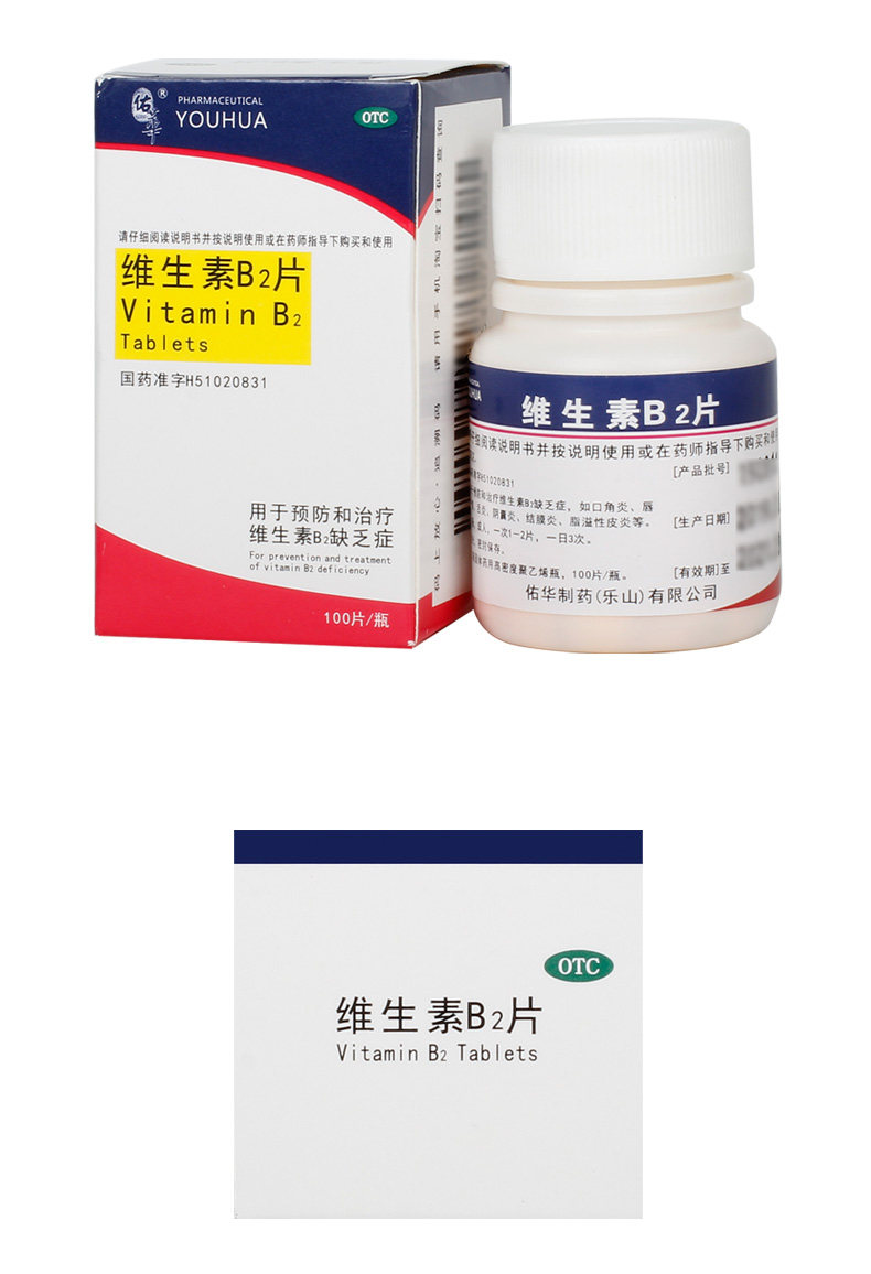 佑华 Таблетки витамина В2 5 мг*100 таблетки*1 бутылка/коробка Отсутствие витамина для губ сухой помада Гольфит Тентерит