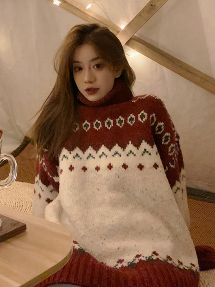 Красный ретро свежий свитер, коллекция 2021, в корейском стиле, популярно в интернете, оверсайз