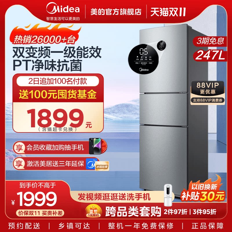 Midea 247L Sankai Gate Rental Dormitory Holrigrator Small Homeving Institute of Instanders Интеллектуальный холодный холодный побед