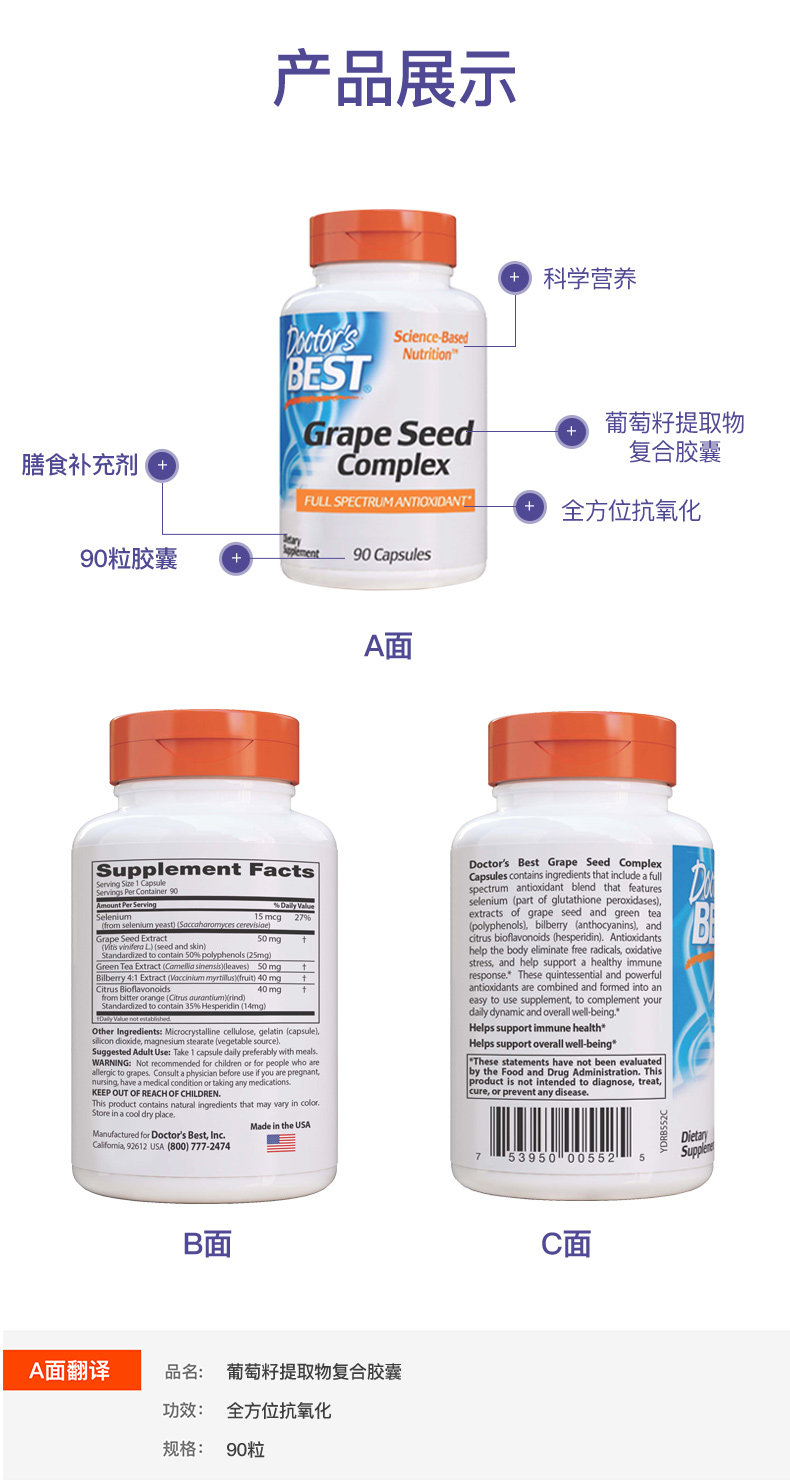 Самый большой доктор Дортбес Американский виноградный семена визана экстракт 90 капсул для композитных капсул