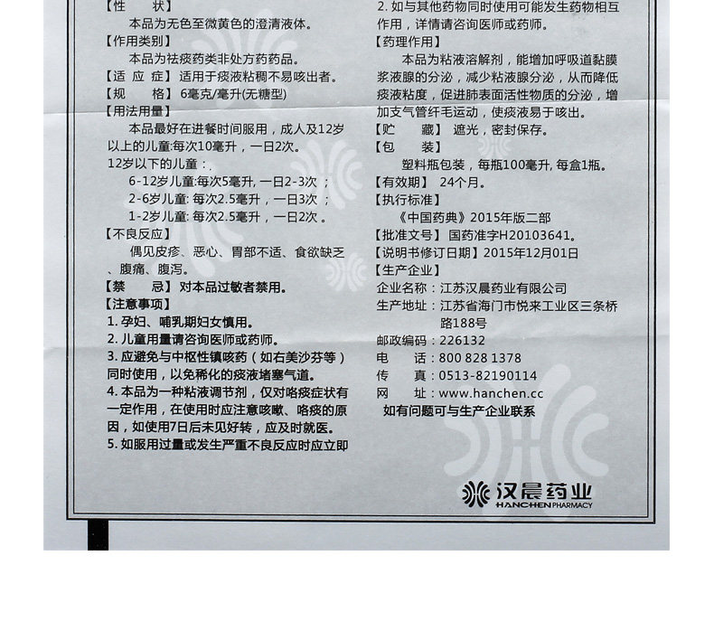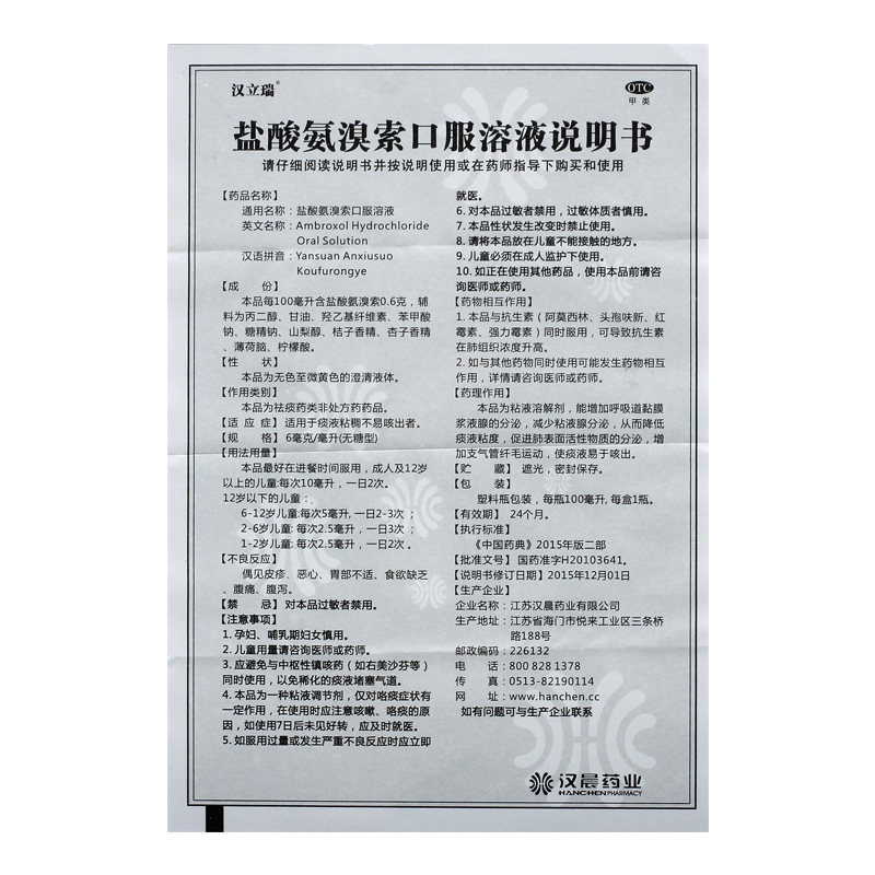 汉立瑞 Аурорамид гидрохлорид пероральный раствор 100 мл*1 бутылка/коробка бронхит холод, кашель, сложности мокроты