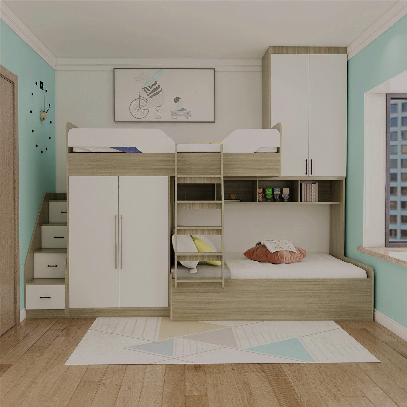 Шоф -удар, двойная слоя много -функциональная, пространственная и неуместная детская кровать, кровать, пунктирная настройка татами