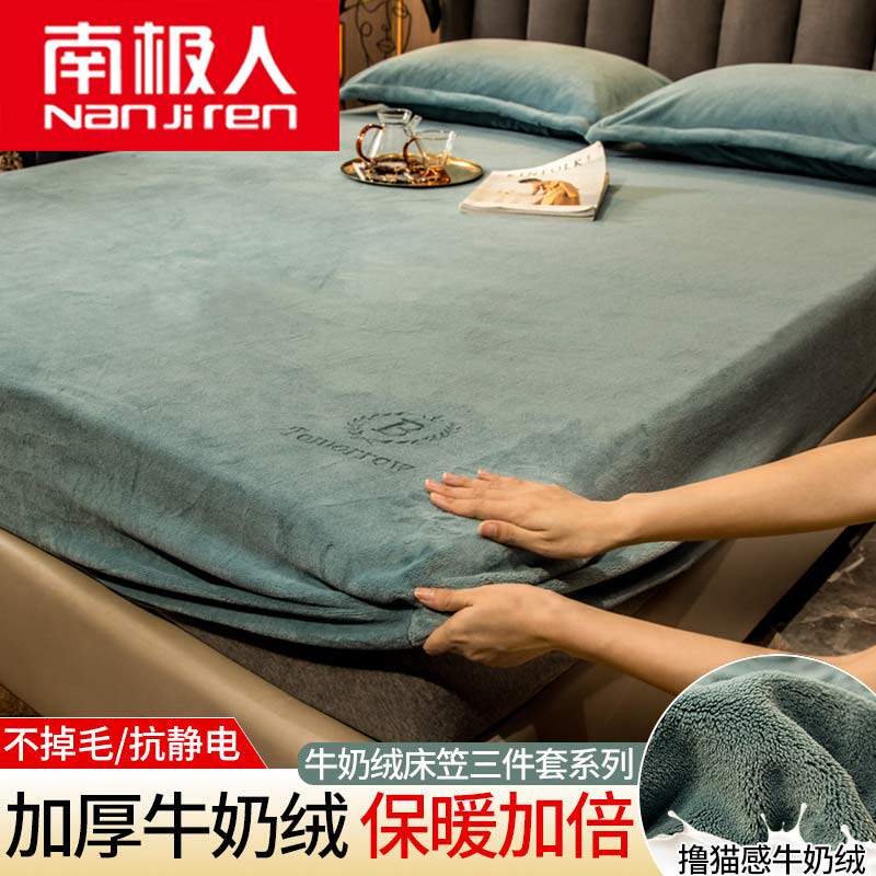 南极人 Коралловая простыня на флисовой подкладке, джинсы с начесом, бархатный матрас, покрывало, нескользящая пылезащитная крышка, фиксаторы в комплекте