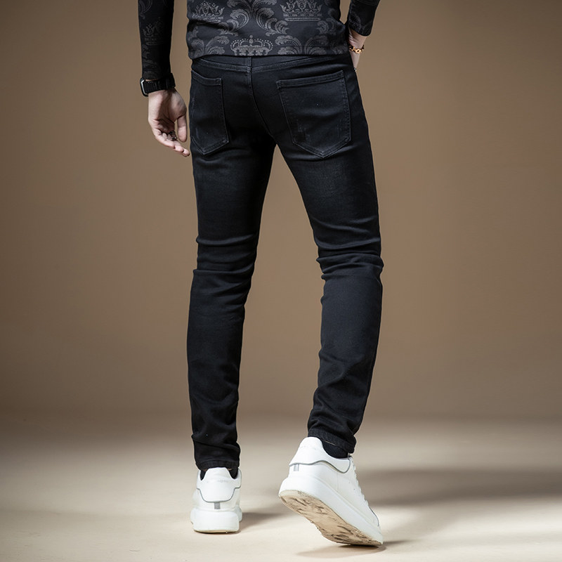 Черные джинсы, трендовые демисезонные повседневные брюки для отдыха, облегающий крой, в корейском стиле