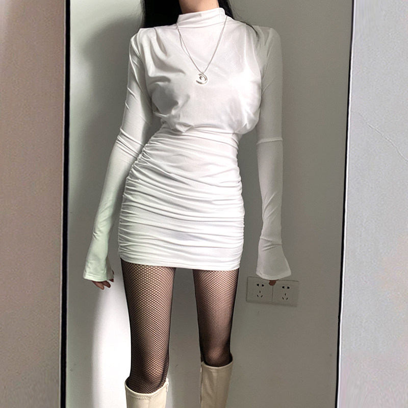 Осенняя дизайнерская сексуальная юбка, белое платье, тренд сезона, яркий броский стиль, с акцентом на бедрах