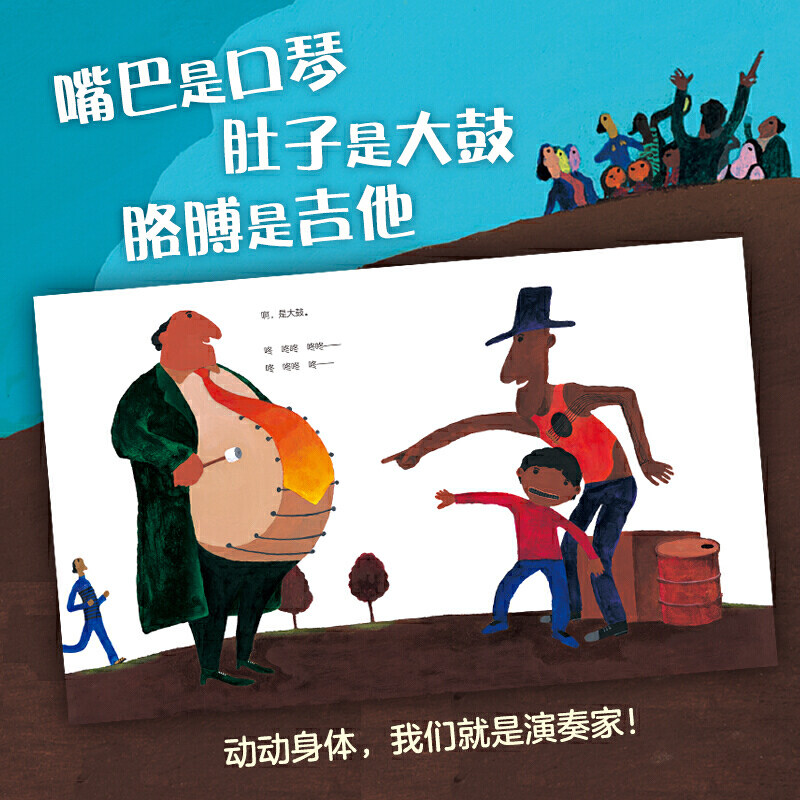 Каждый участник выступил с коротким, но захватывающим выступлением, раскрывая свой секретный инструмент: гитара перебирала струны, аккордеон растягивался, а фортепиано играло всеми десятью пальцами.Когда люди играют на музыкальных инструментах, их тела также раскачиваются в такт музыке, и пять вкусов полностью усваивают музыку, улавливают характеристики каждого инструмента и интегрируют инструменты в тело.Когда дети через эту книгу знакомятся с музыкальными инструментами, их познавательное направление начинается с собственного тела, переходя от знакомого к неизведанному, и они могут более плавно понять суть различных инструментов.Дети всегда усваивают новые знания посредством подражания, а язык тела может лучше помочь им понять и запомнить.«My Mouth Is a Harmonica» соответствует этим натурам.“Играть“Нужно широко развернуть корпус, вытянуть руки, выпрямить живот, слегка присесть или поднять одну ногу. Процесс чтения полон взаимодействия и веселья, и вы можете просто открыть книгу.“Играть”музыка.Благодаря прямому и инстинктивному раскачиванию тела дети также могут ощутить ощущения от игры различных инструментов и различных ритмов музыки.