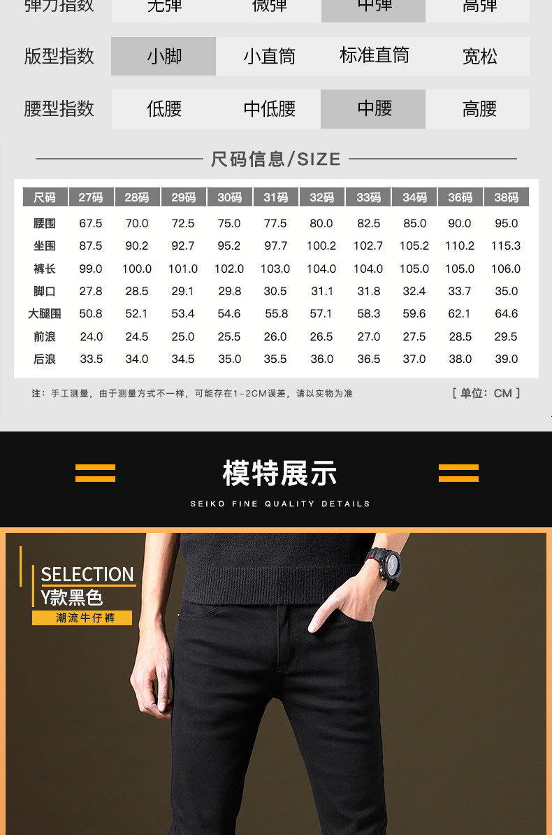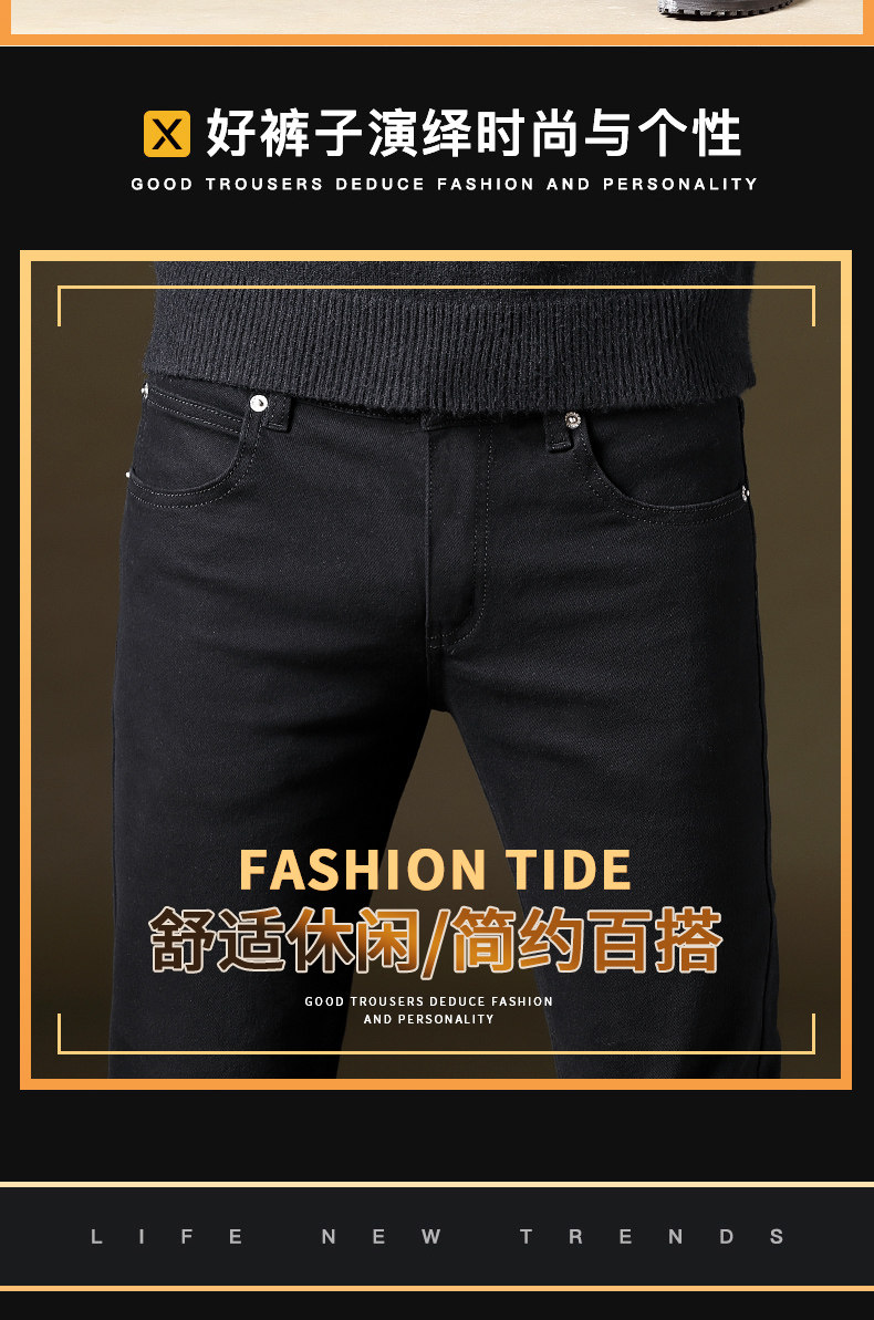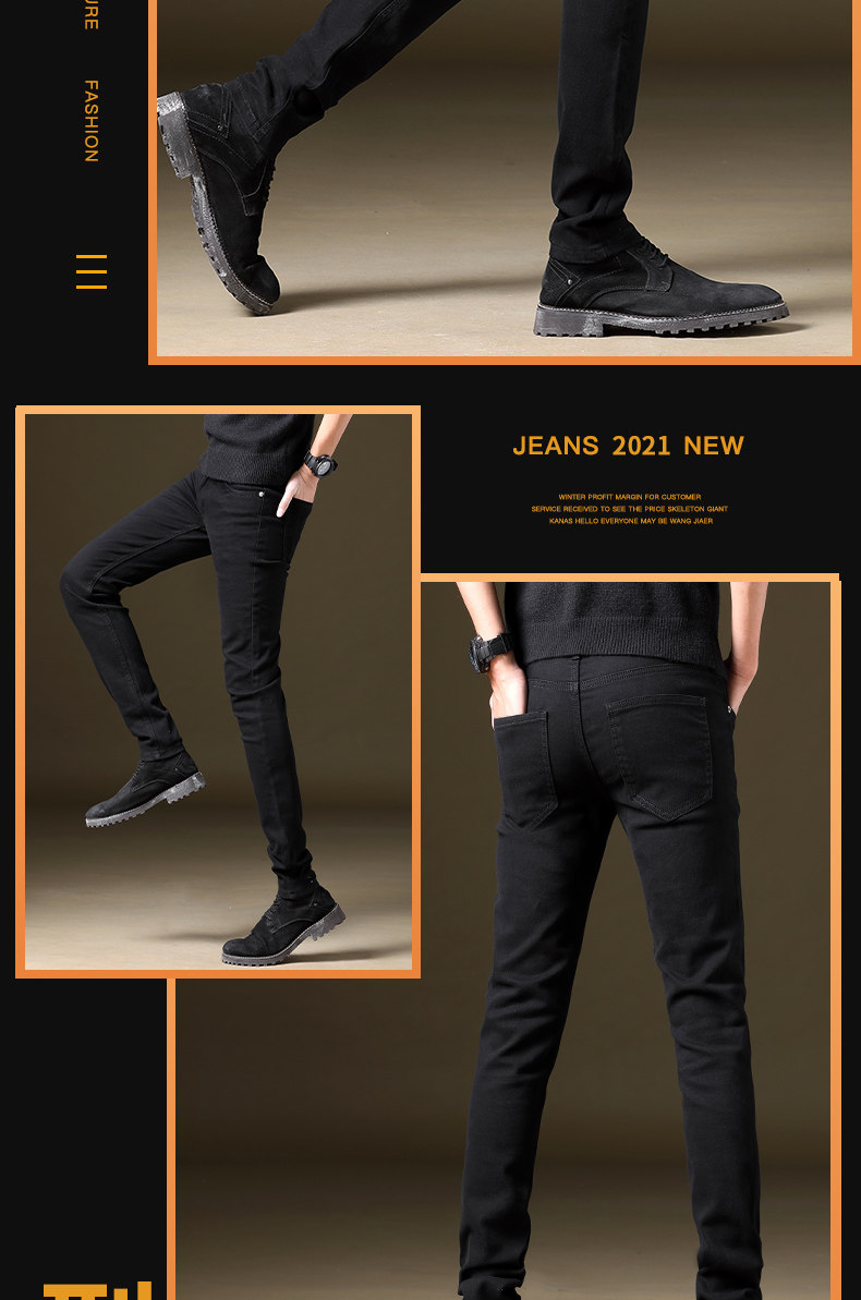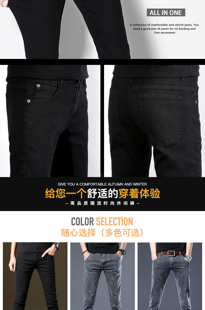 Осенние демисезонные джинсы, трендовые черные штаны для отдыха