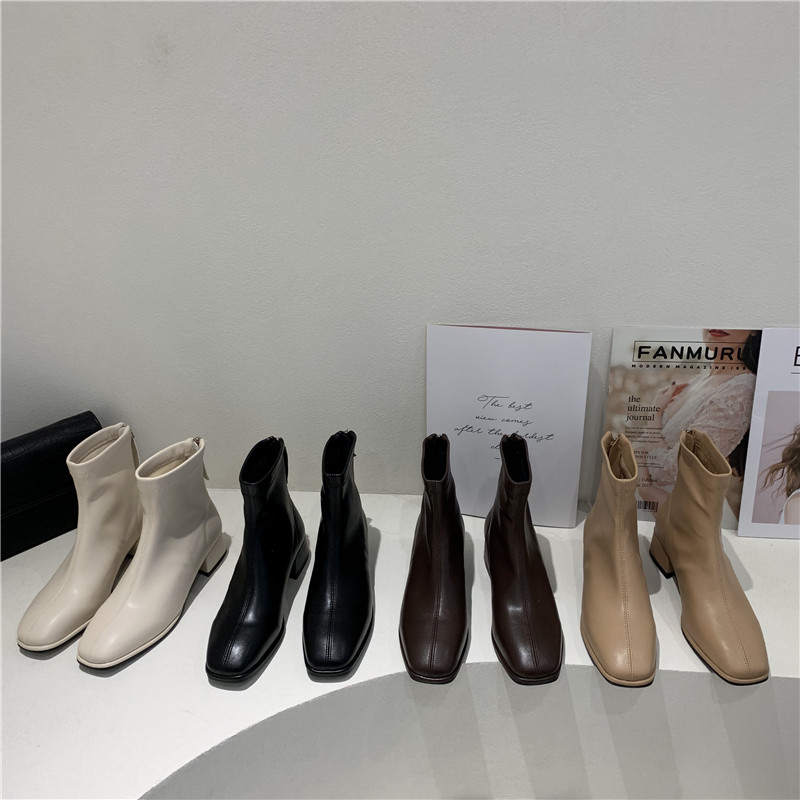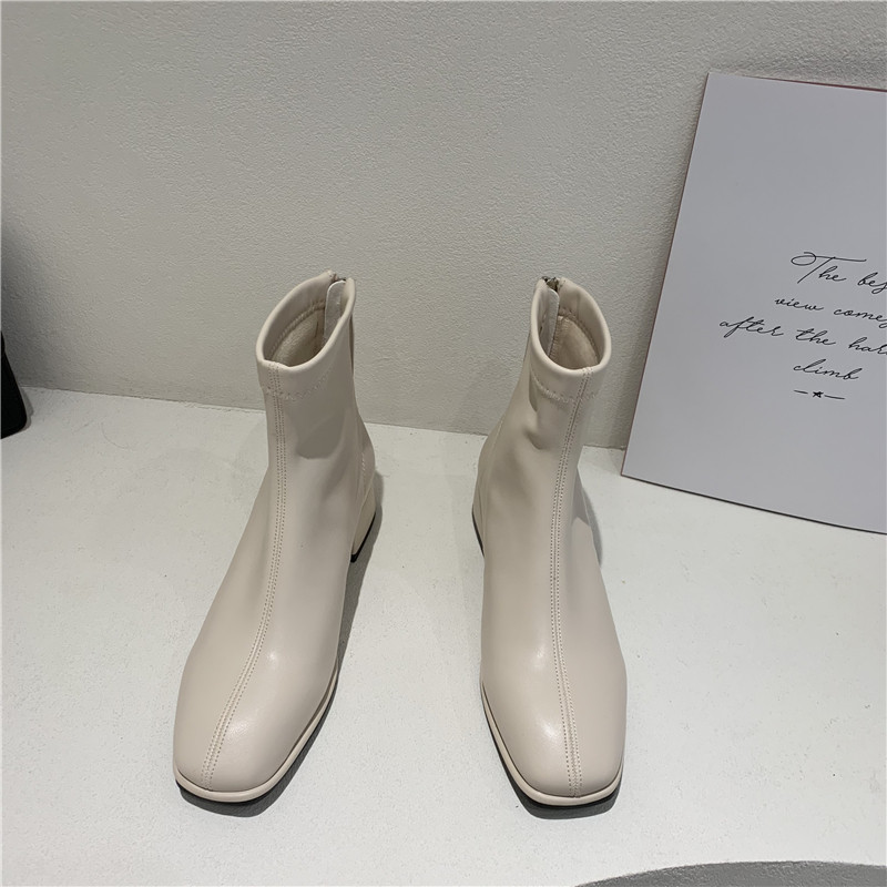 Martens, ботинки, демисезонные утепленные ботильоны, бежевые короткие сапоги, в корейском стиле, 2020 года