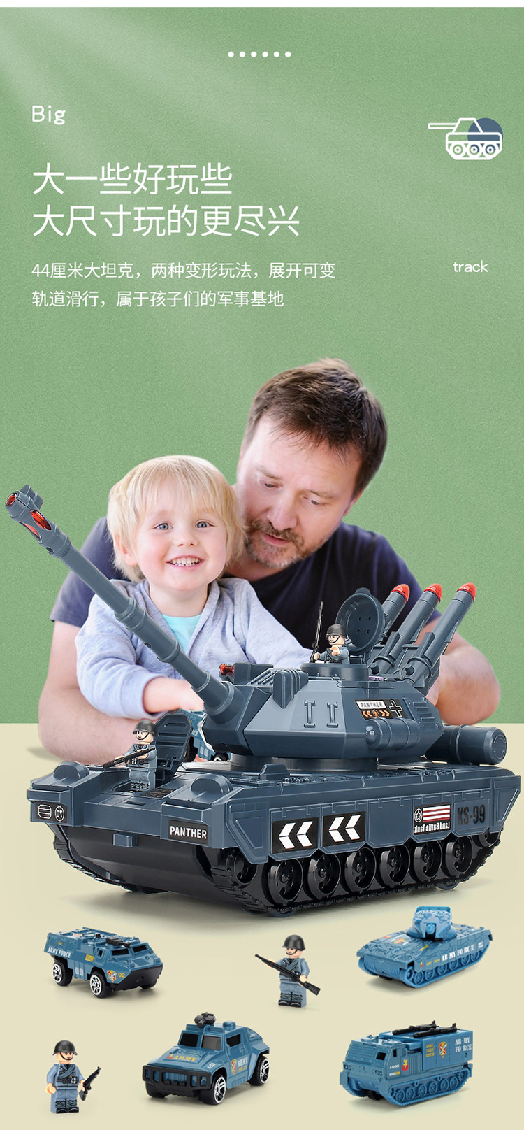 Большой танк, игрушка, универсальный трансформер, игрушечная машина для мальчиков, транспорт, 3-4 лет
