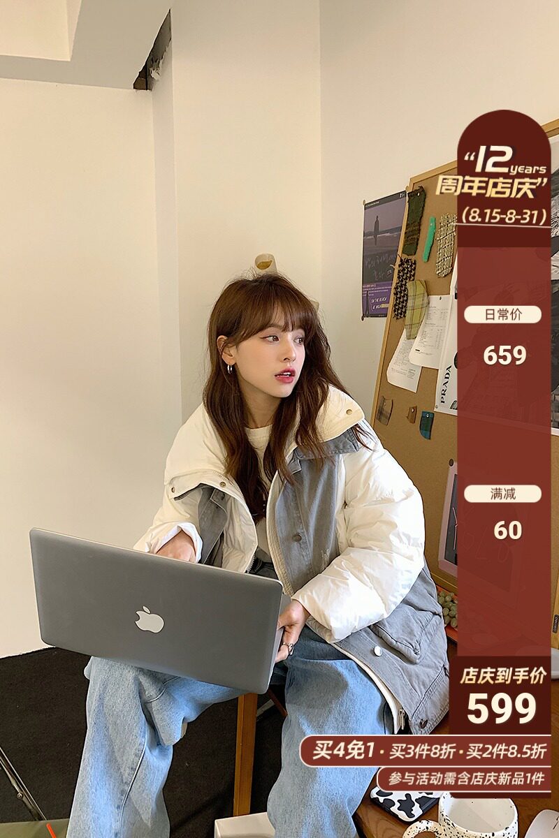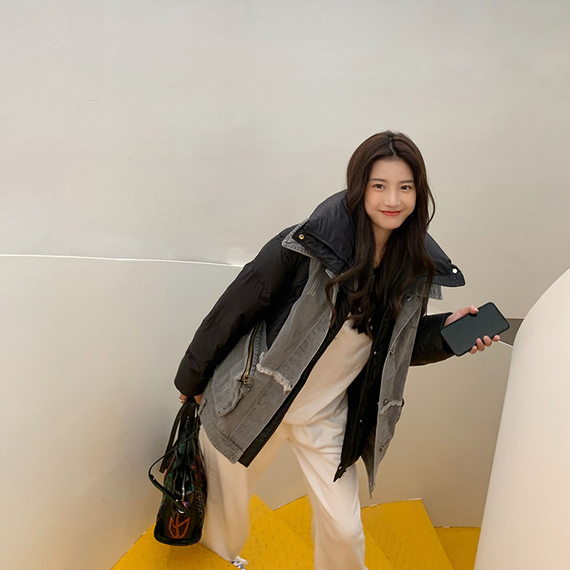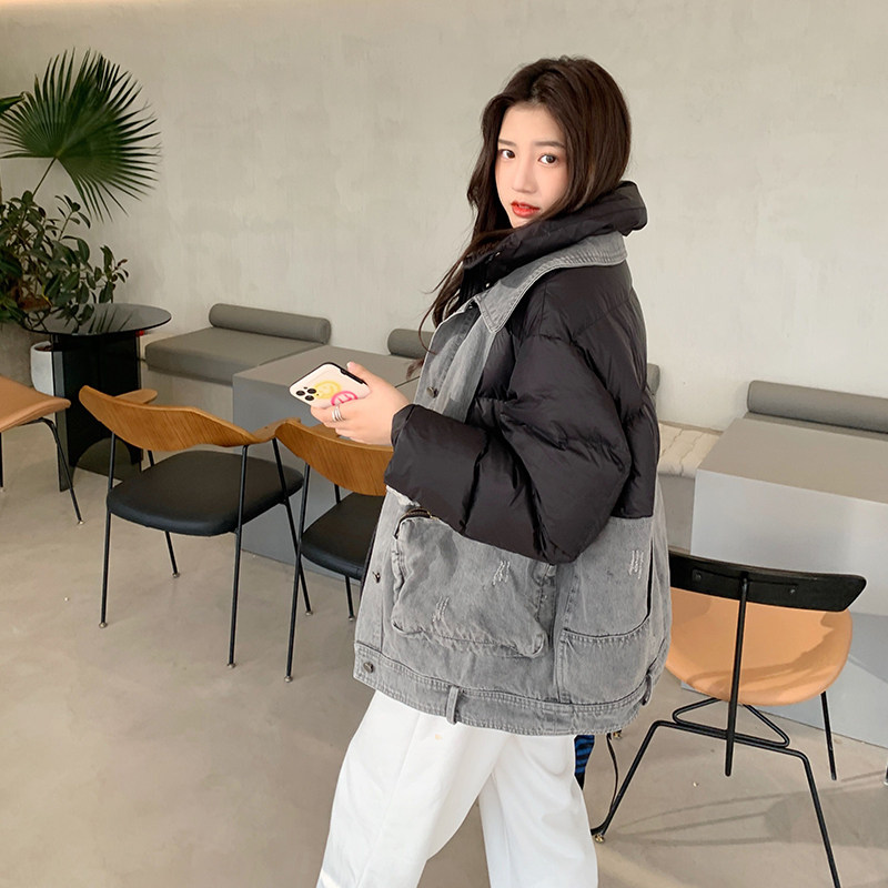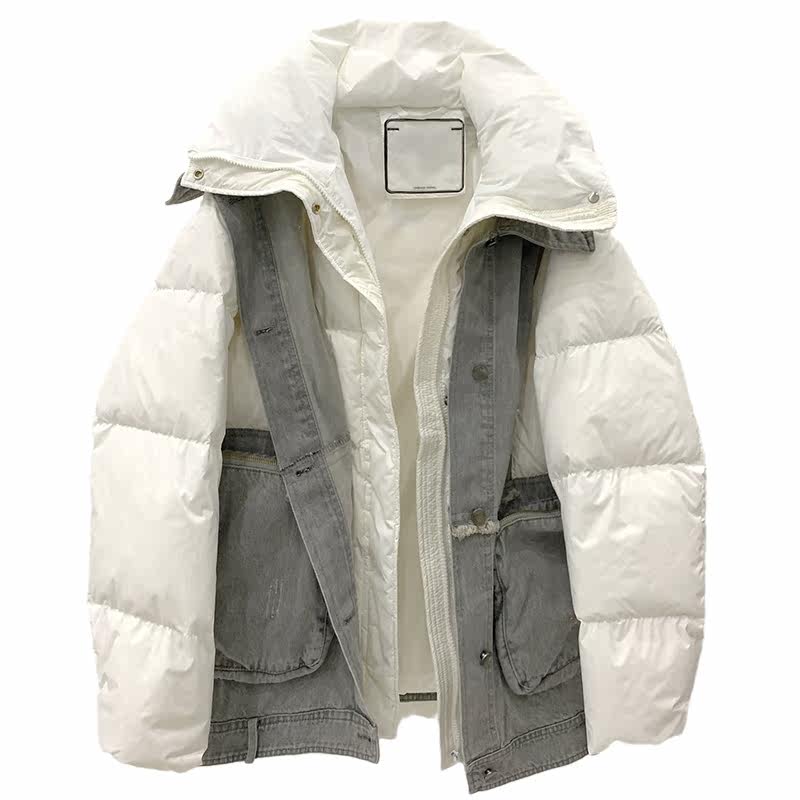 Джинсовый модный удерживающий тепло пуховик в форме цветка с пухом, 2020, городской стиль