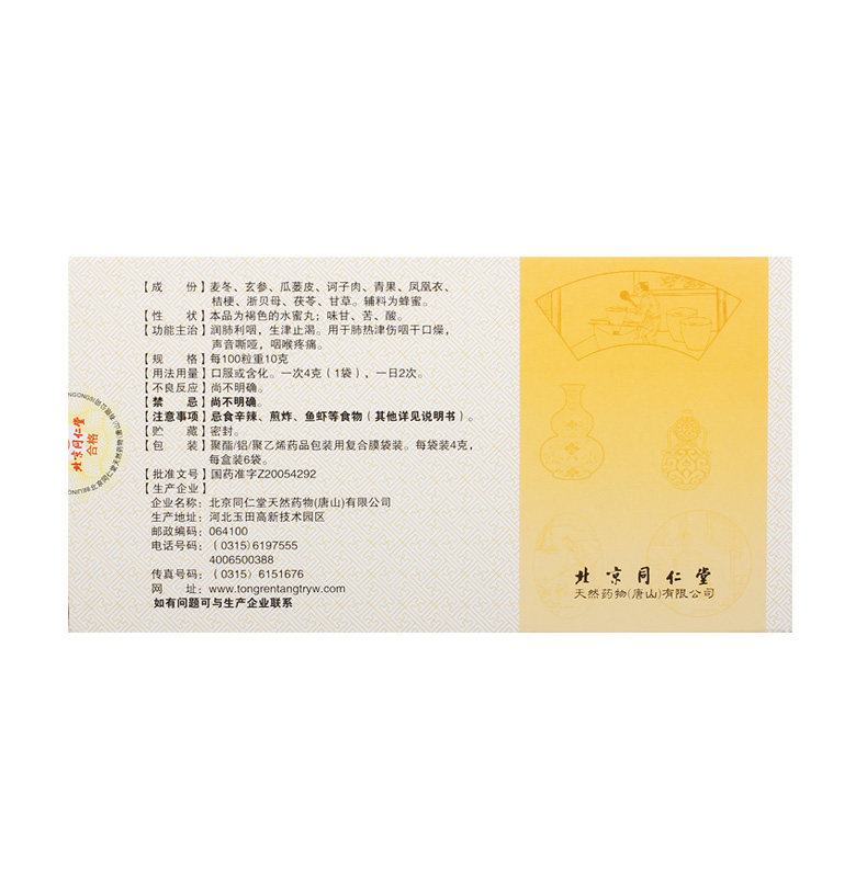 同仁堂 Железная флейта таблетки 4G*6 мешок/ящик рот рот дует