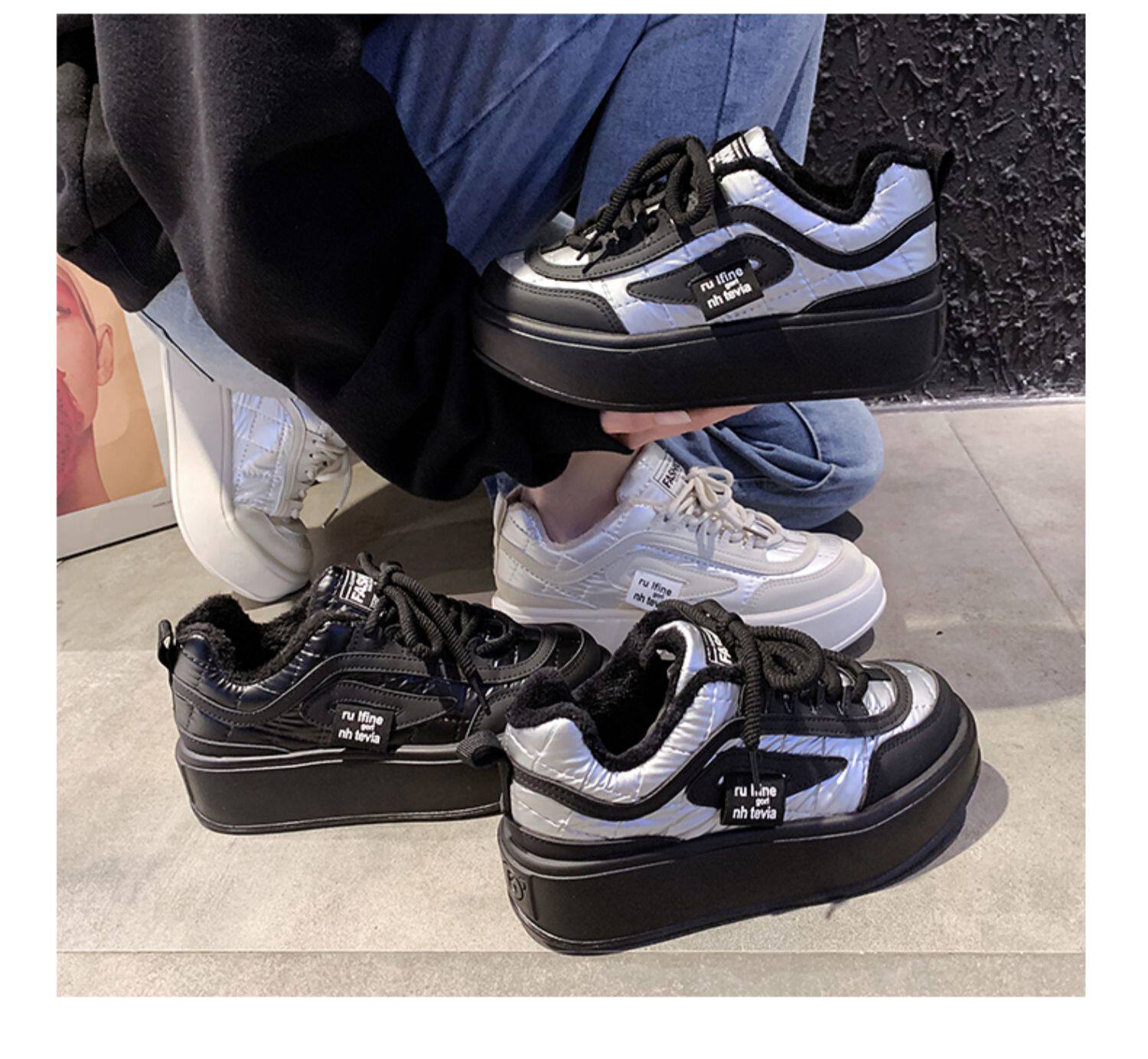 Обувь на платформе, высокие утепленные удерживающие тепло лоферы, 2020