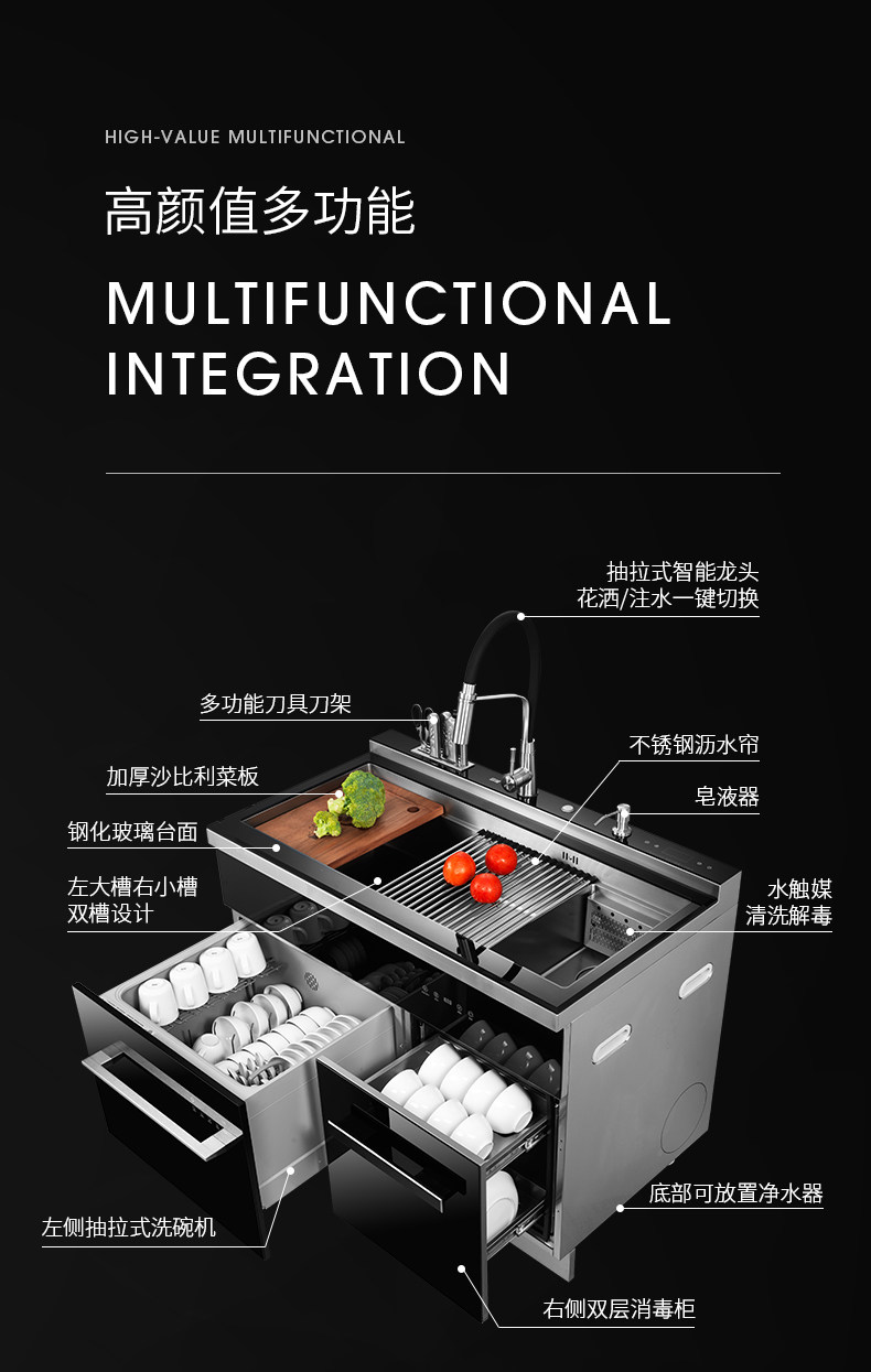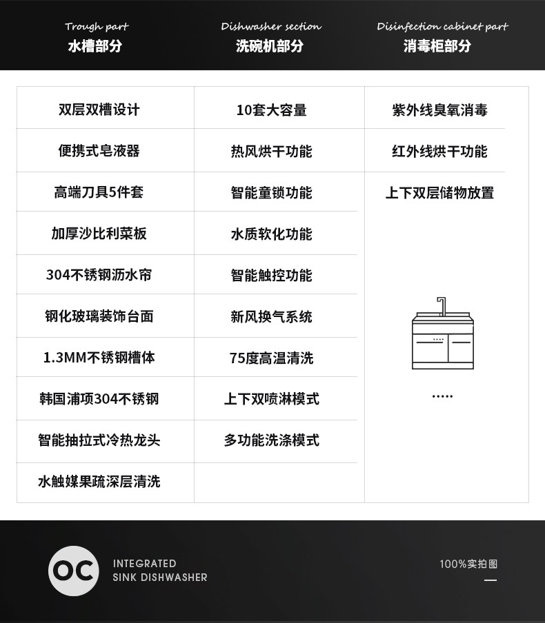 欧诚 1050 интегрированная раковина посудомоечная машина интегрированная встроенная полностью автоматическая ультразвуковая дезинфекция фруктов и стиральная машина для овощей