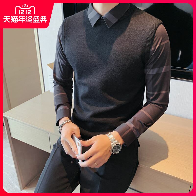 Комплект, свитер для отдыха, демисезонная трендовая базовая шерстяная рубашка, в корейском стиле