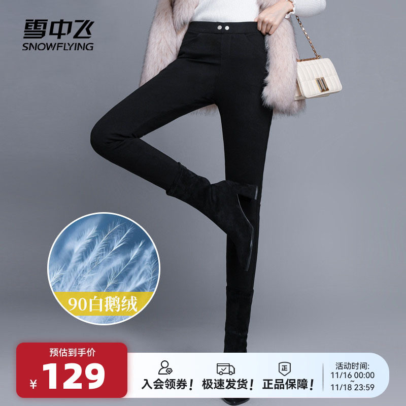 Демисезонные бархатные удерживающие тепло штаны с пухом, высокая талия, увеличенная толщина, гусиный пух, облегающий крой