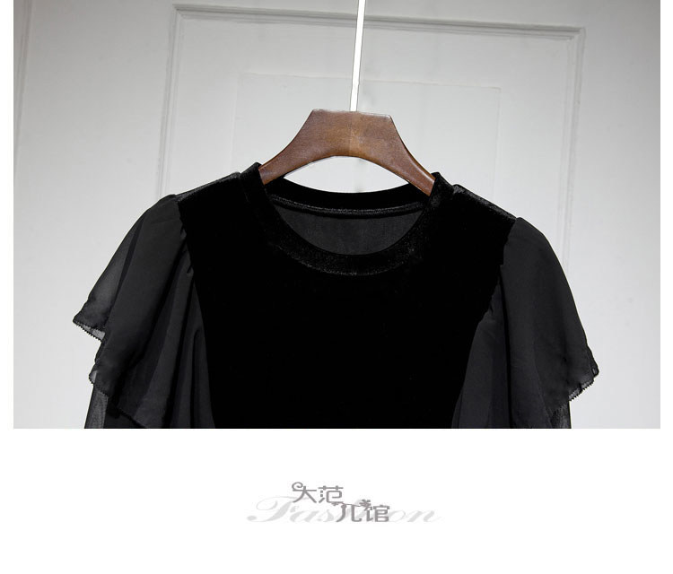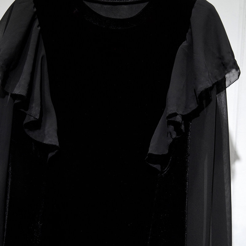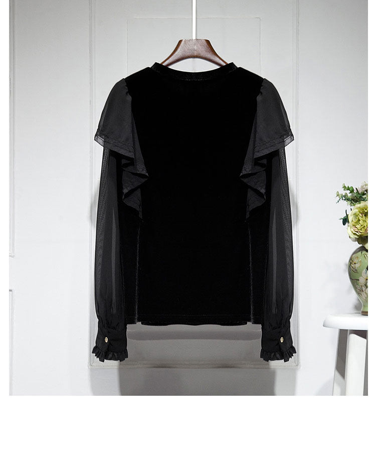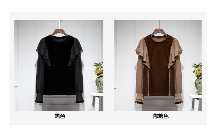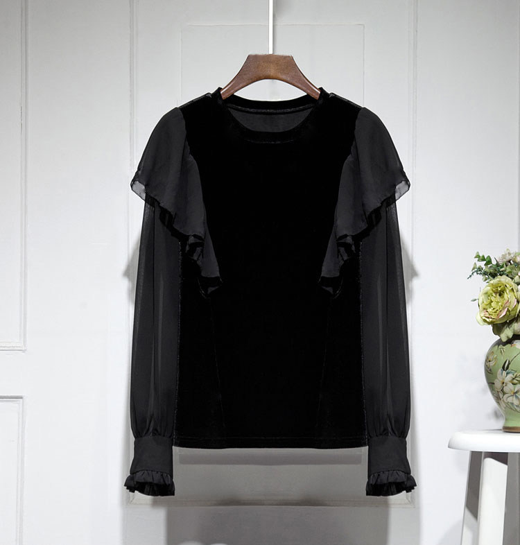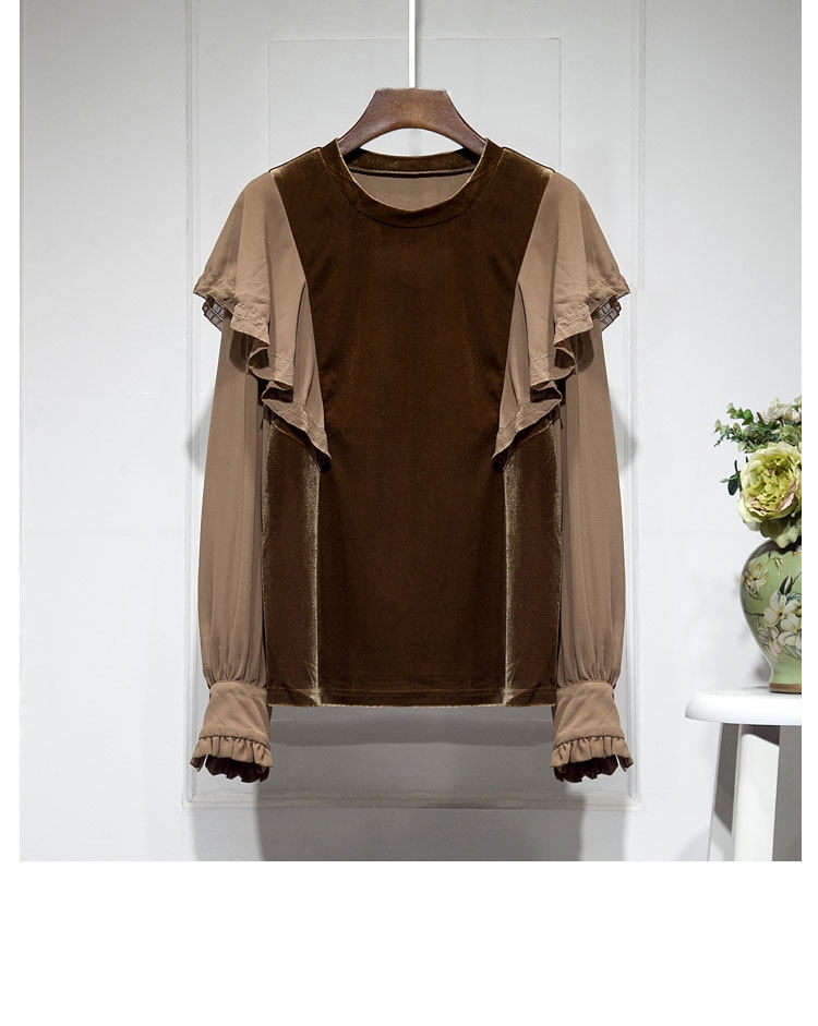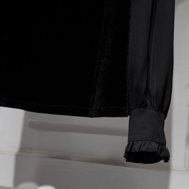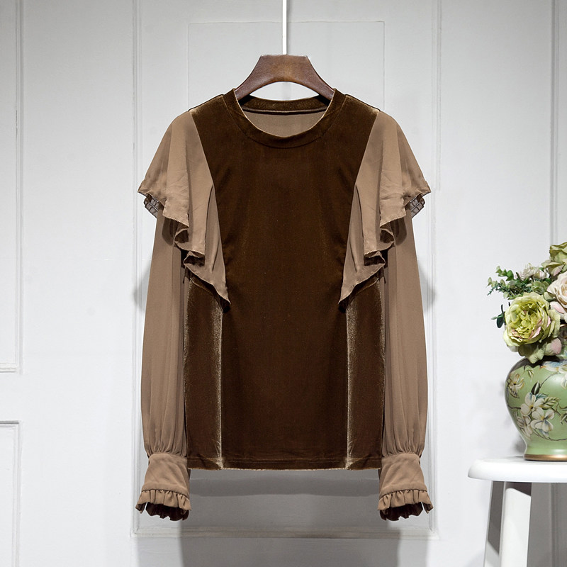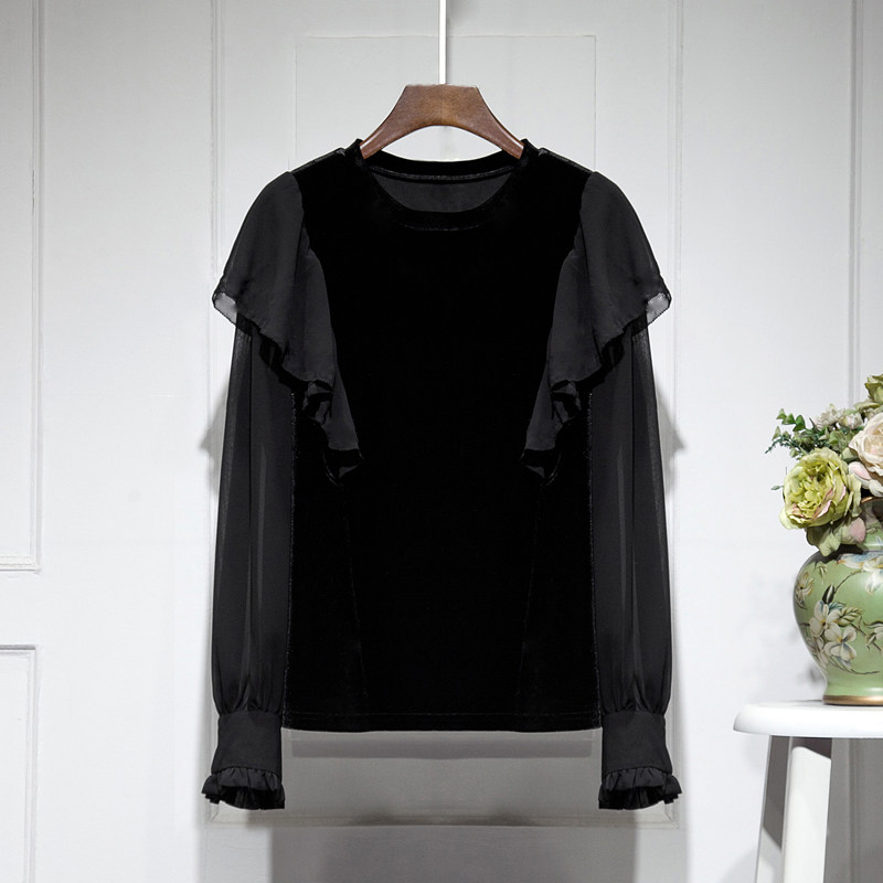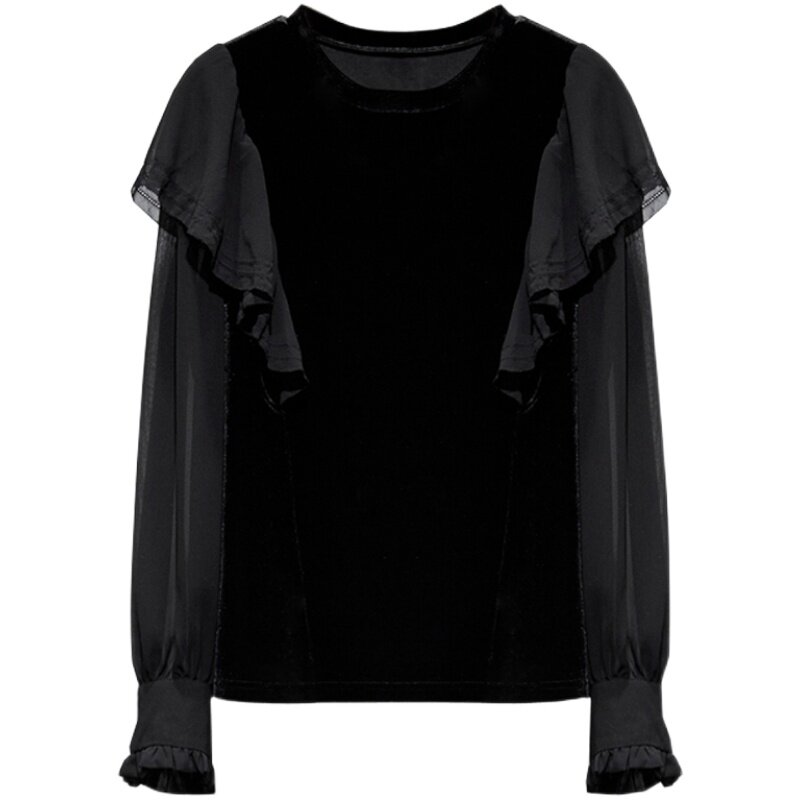 Бархатная шифоновая зимняя рубашка с круглым воротником, 2023