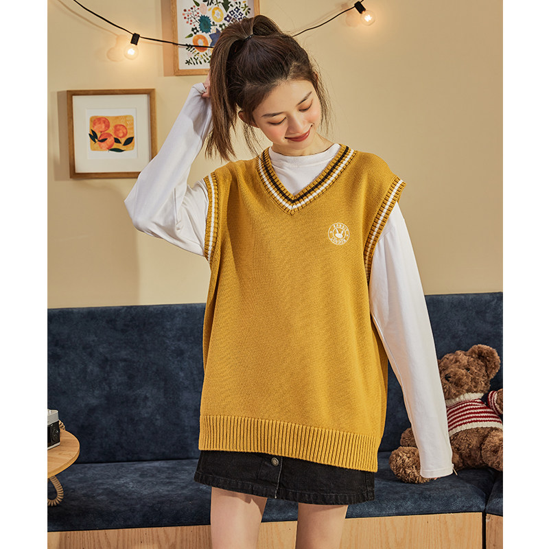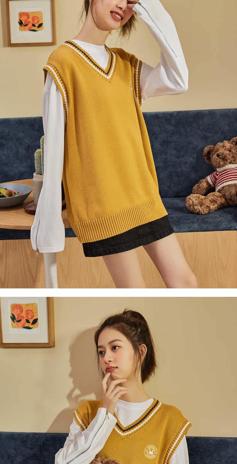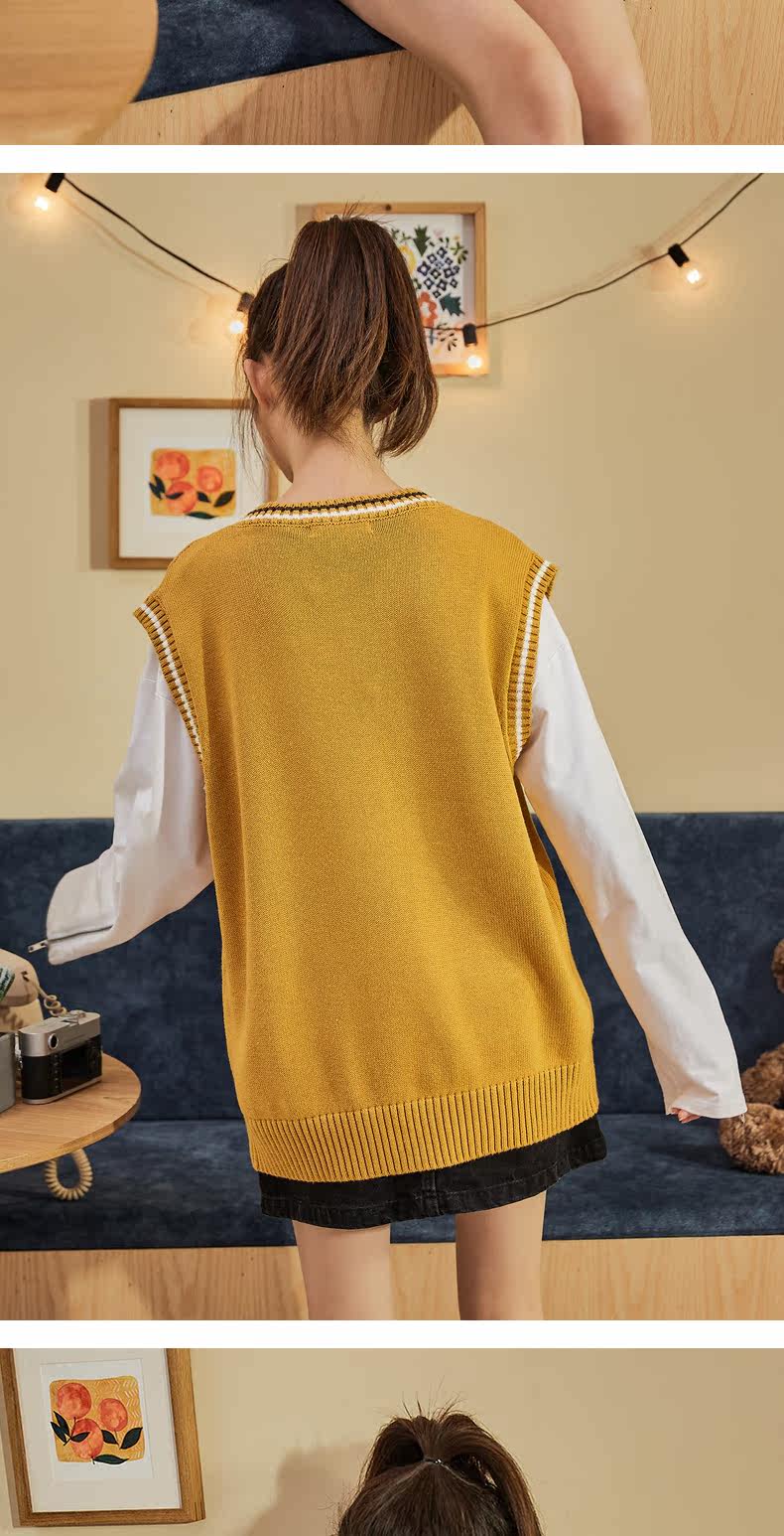Весенний трикотажный брендовый жилет, коллекция 2021, V-образный вырез, в корейском стиле, оверсайз