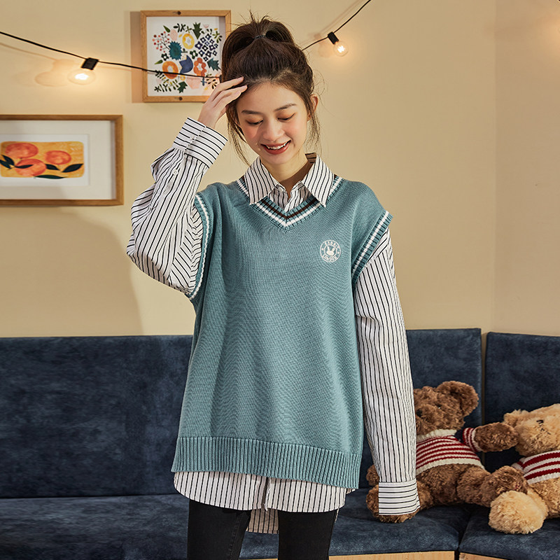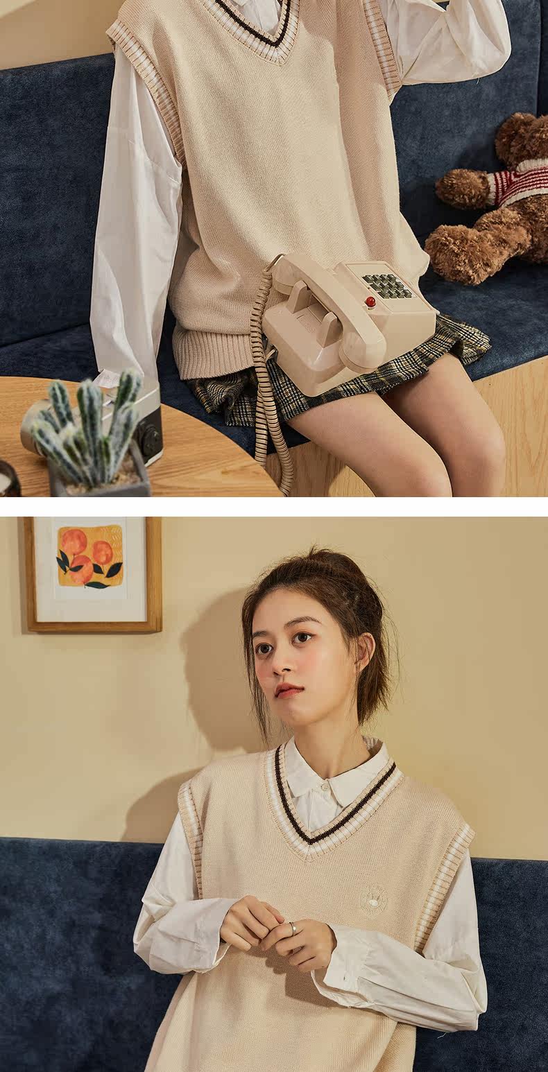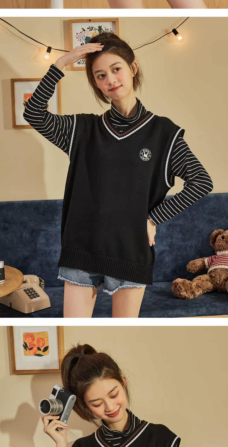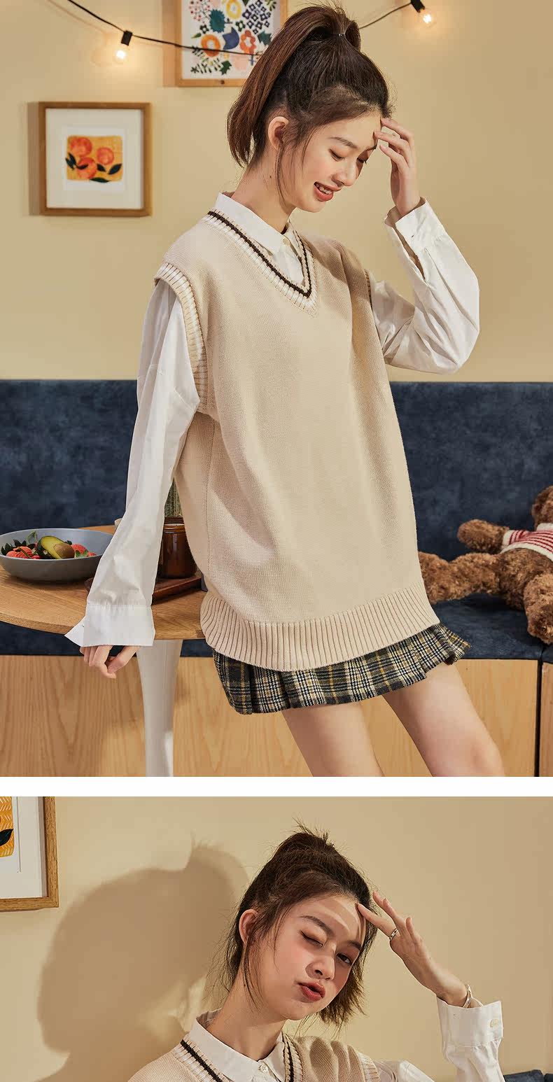 Весенний трикотажный брендовый жилет, коллекция 2021, V-образный вырез, в корейском стиле, оверсайз