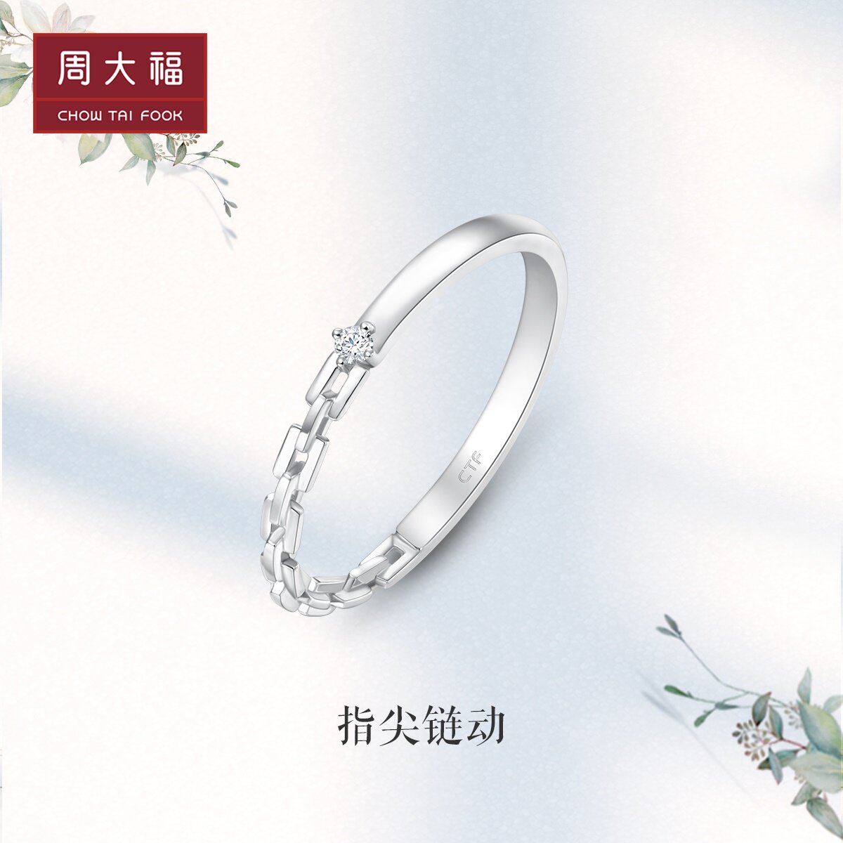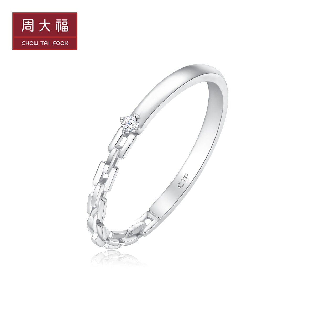 周大福 Брендовое ювелирное украшение, кольцо, простой и элегантный дизайн, серебро 925 пробы