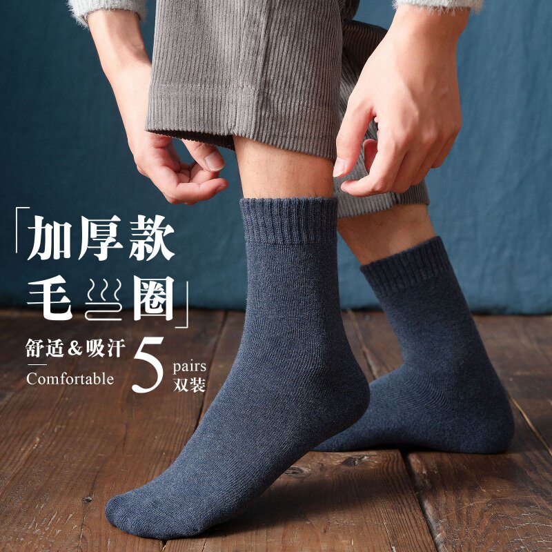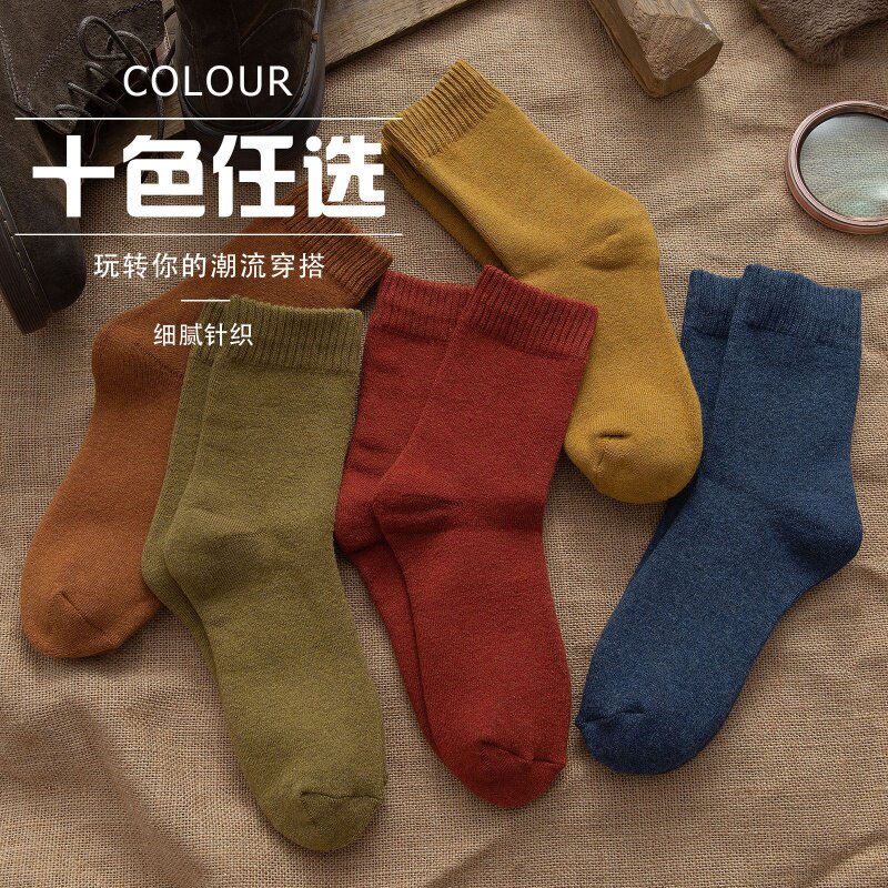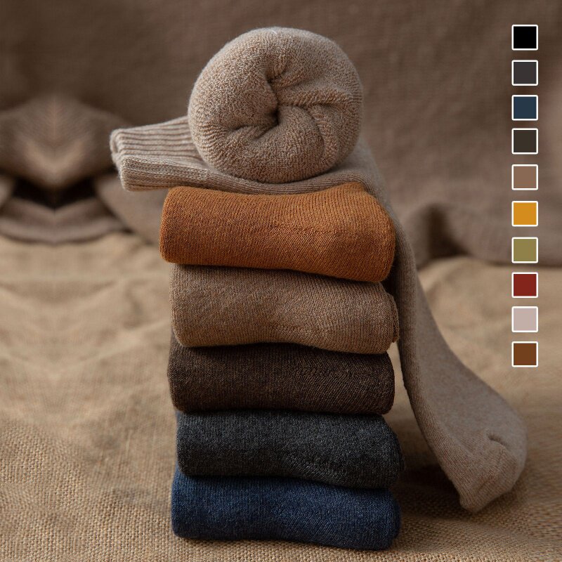 Мужские носки, осенние гольфы, удерживающее тепло утепленное зимнее полотенце, средней длины, высокая талия