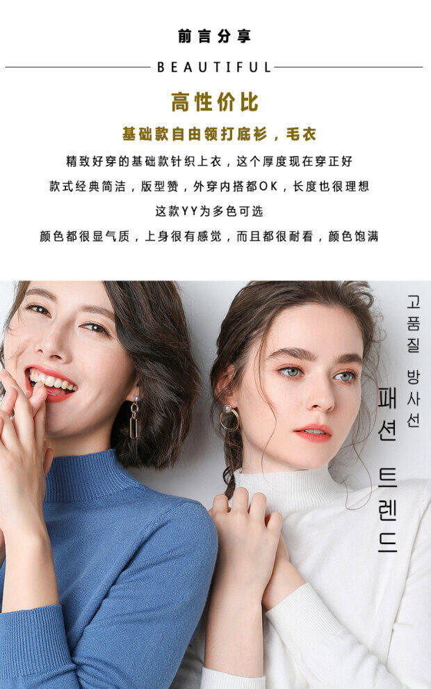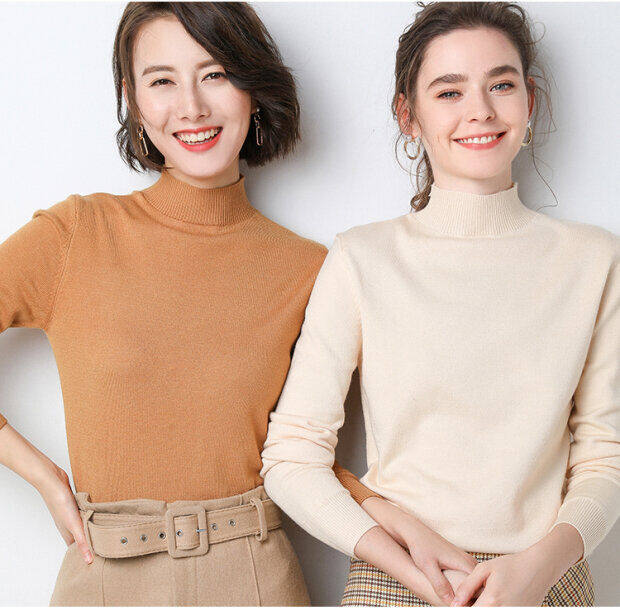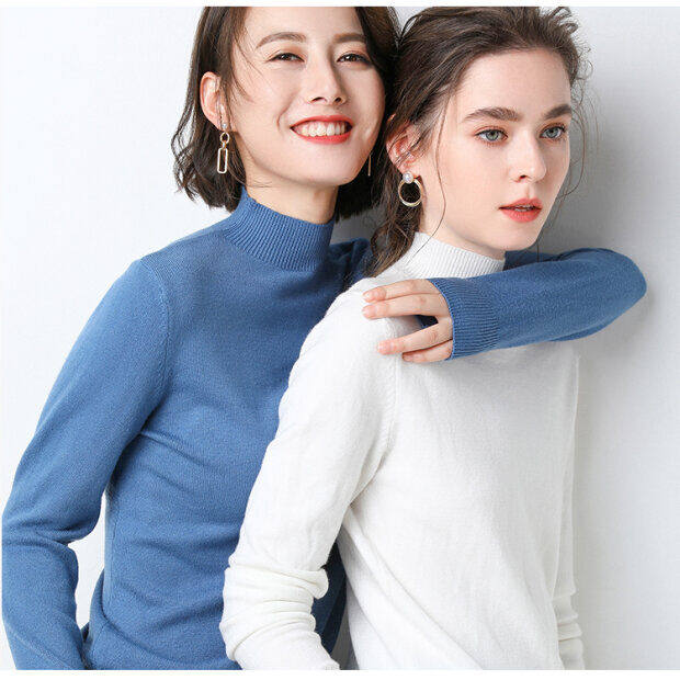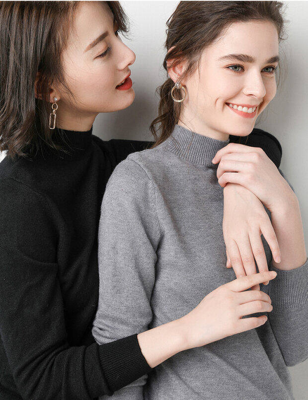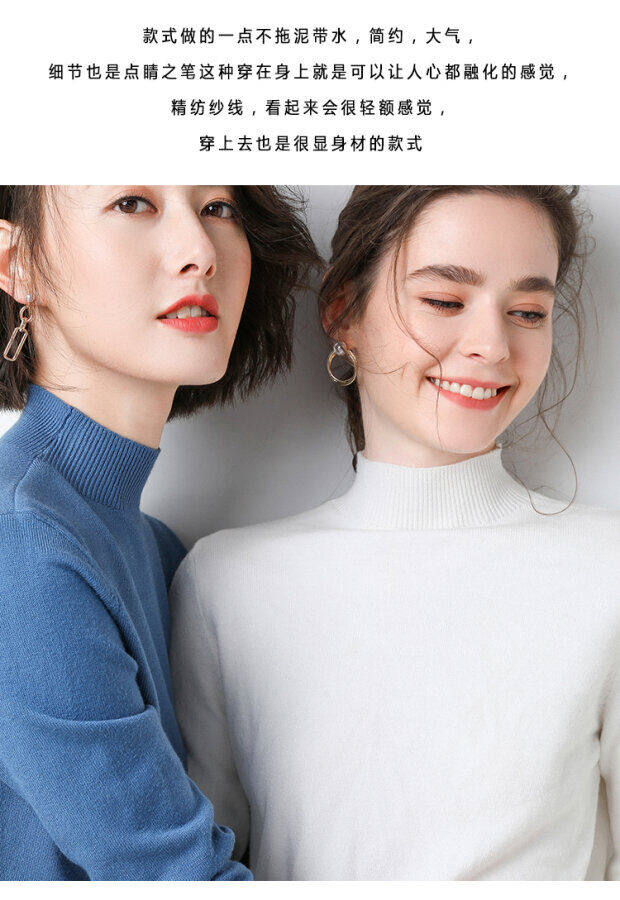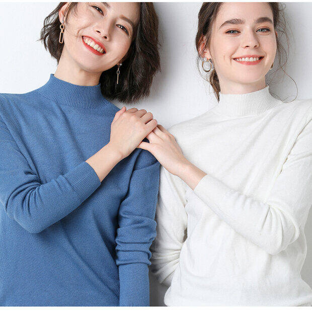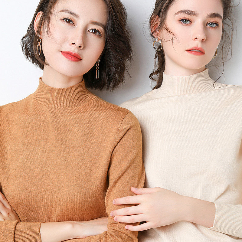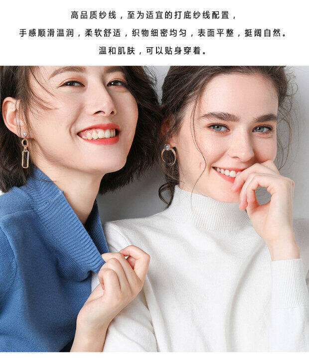 Базовый приятный телу демисезонный кашемировый шерстяной трикотажный свитер, в западном стиле, высокий воротник, в корейском стиле