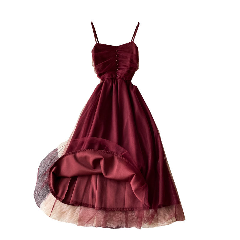 Осеннее платье с рукавами без рукавов, приталенный корсет, платье-комбинация, длинная юбка, французский стиль
