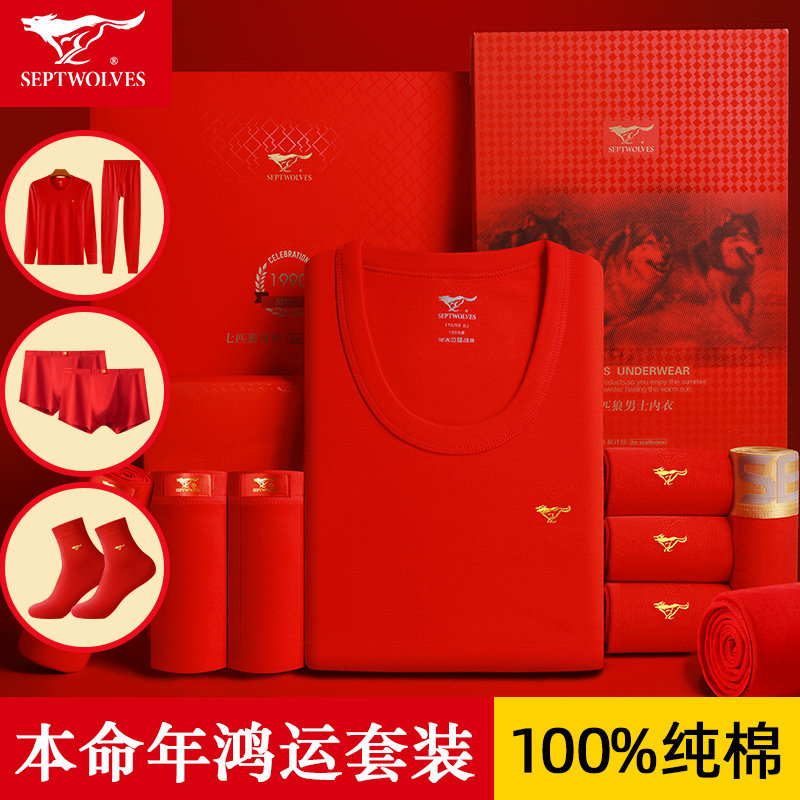 Septwolves, оберег на день рождения, мужской хлопковый комбинезон, красное термобелье, штаны